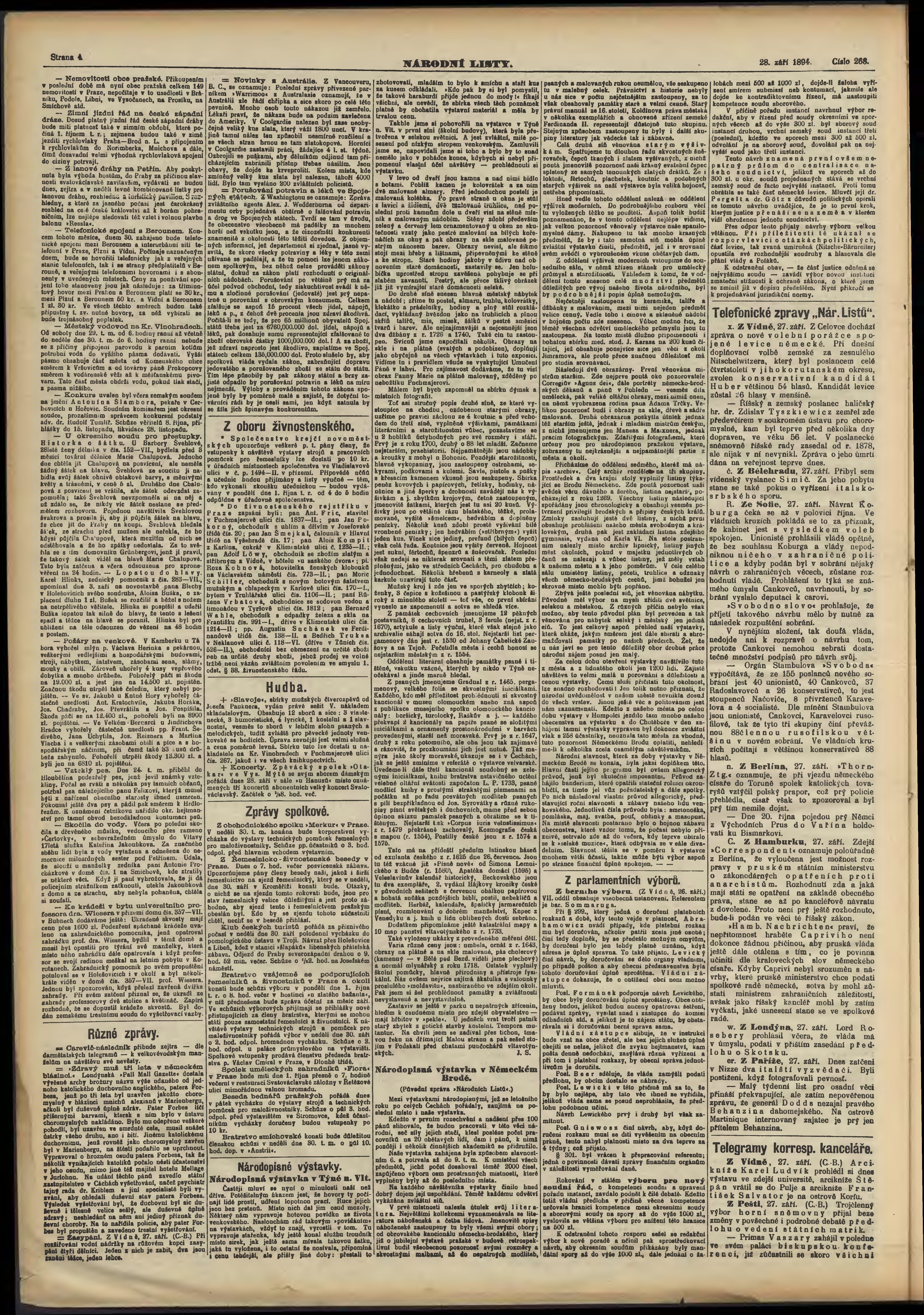 * Datum vydání výtisku: 28.9.1894 Číslo výtisku: 268