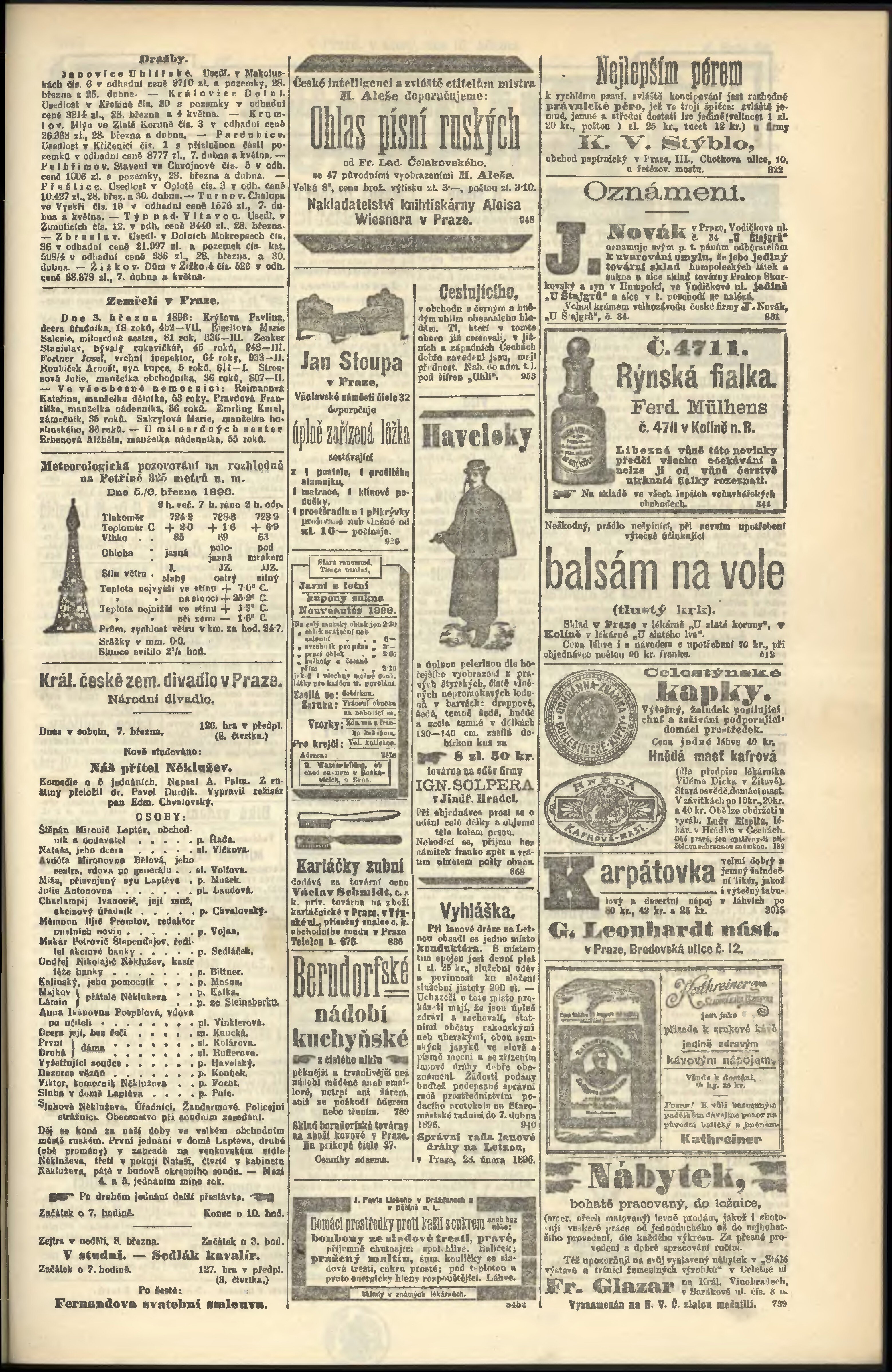 * Datum vydání výtisku: 7.3.1896 Číslo výtisku: 66 Poznámky k výtisku: odpolední vydání;