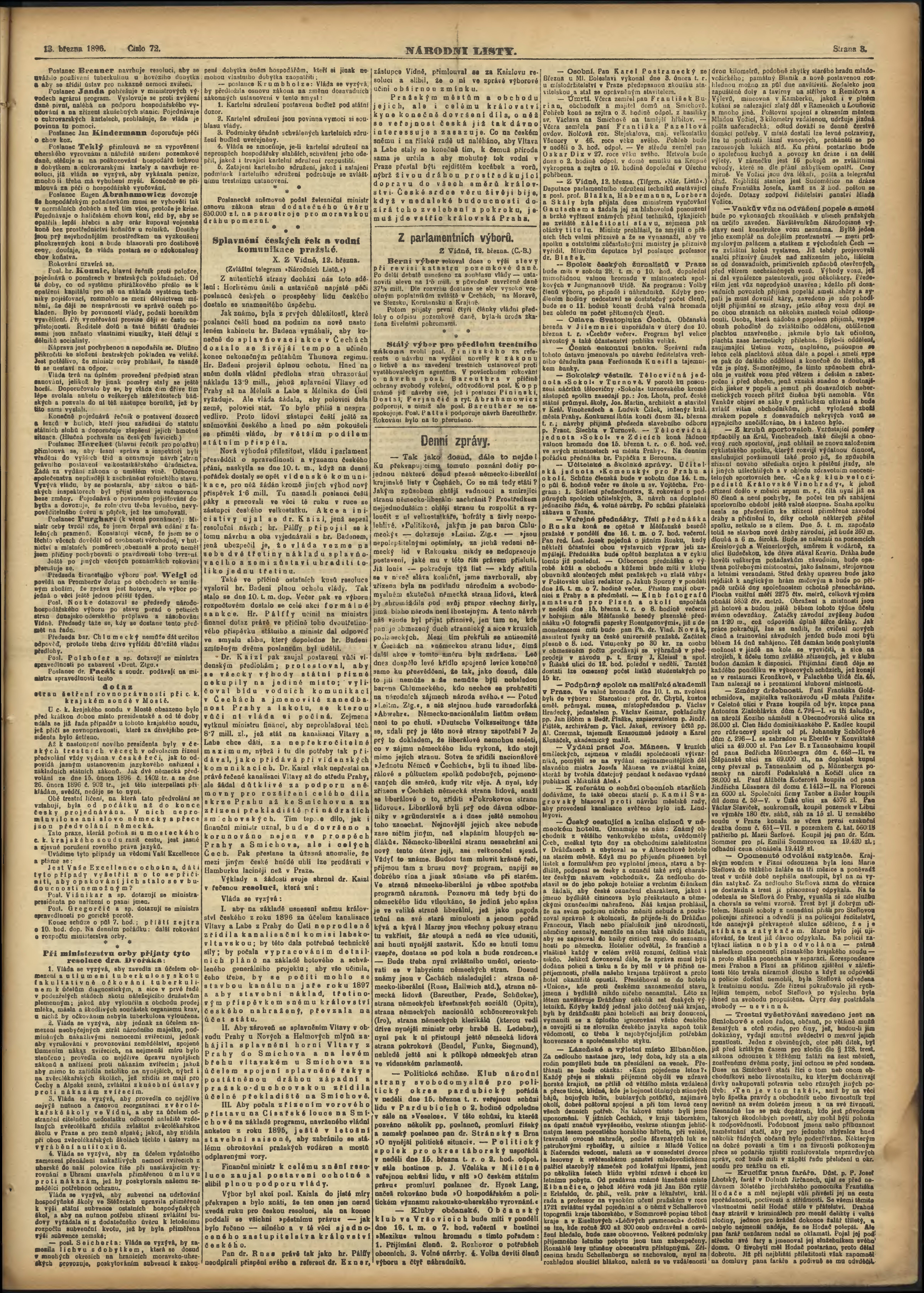 * Datum vydání výtisku: 13.3.1896 Číslo výtisku: 72