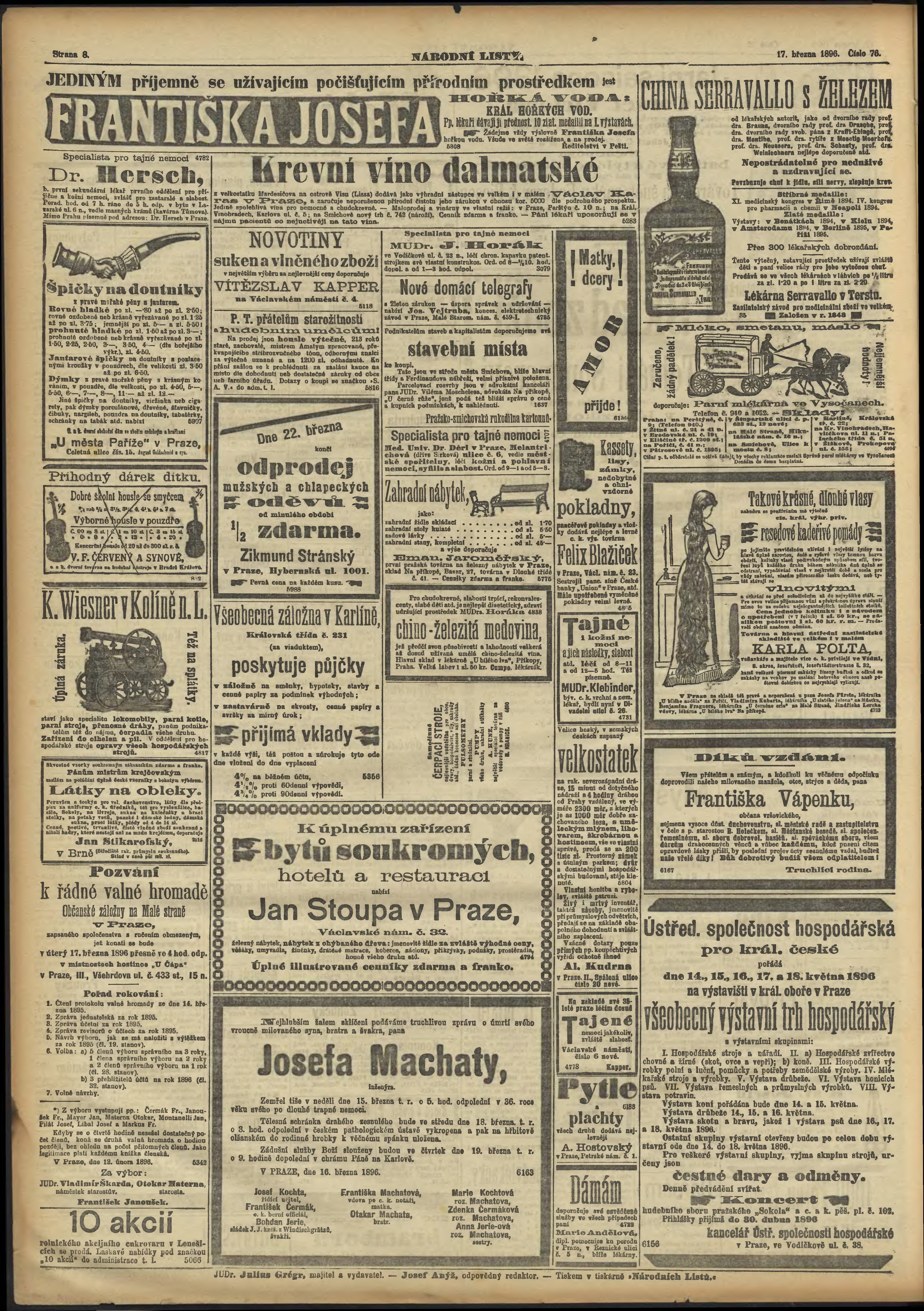 * Datum vydání výtisku: 17.3.1896 Číslo výtisku: 76