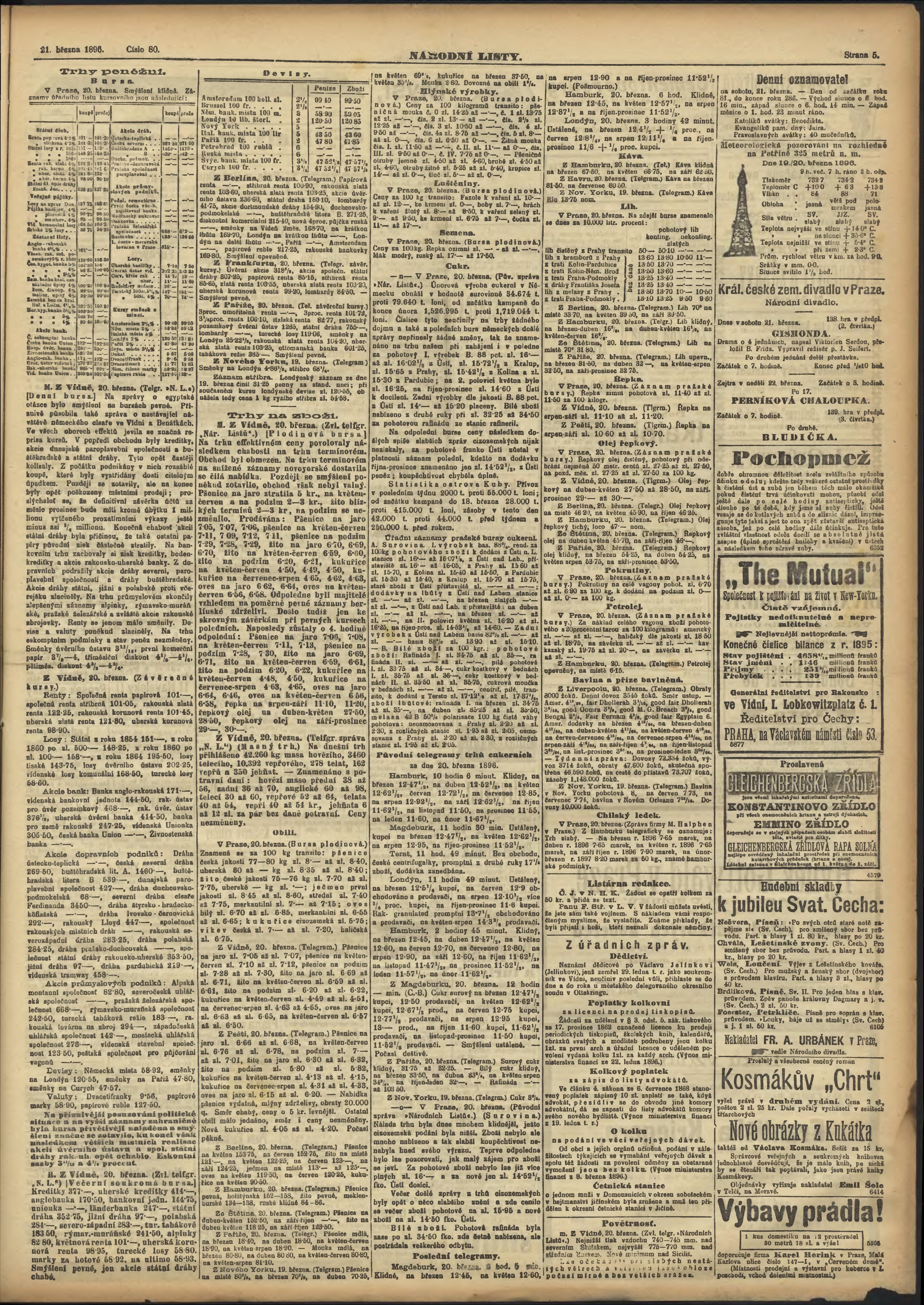 * Datum vydání výtisku: 21.3.1896 Číslo výtisku: 80