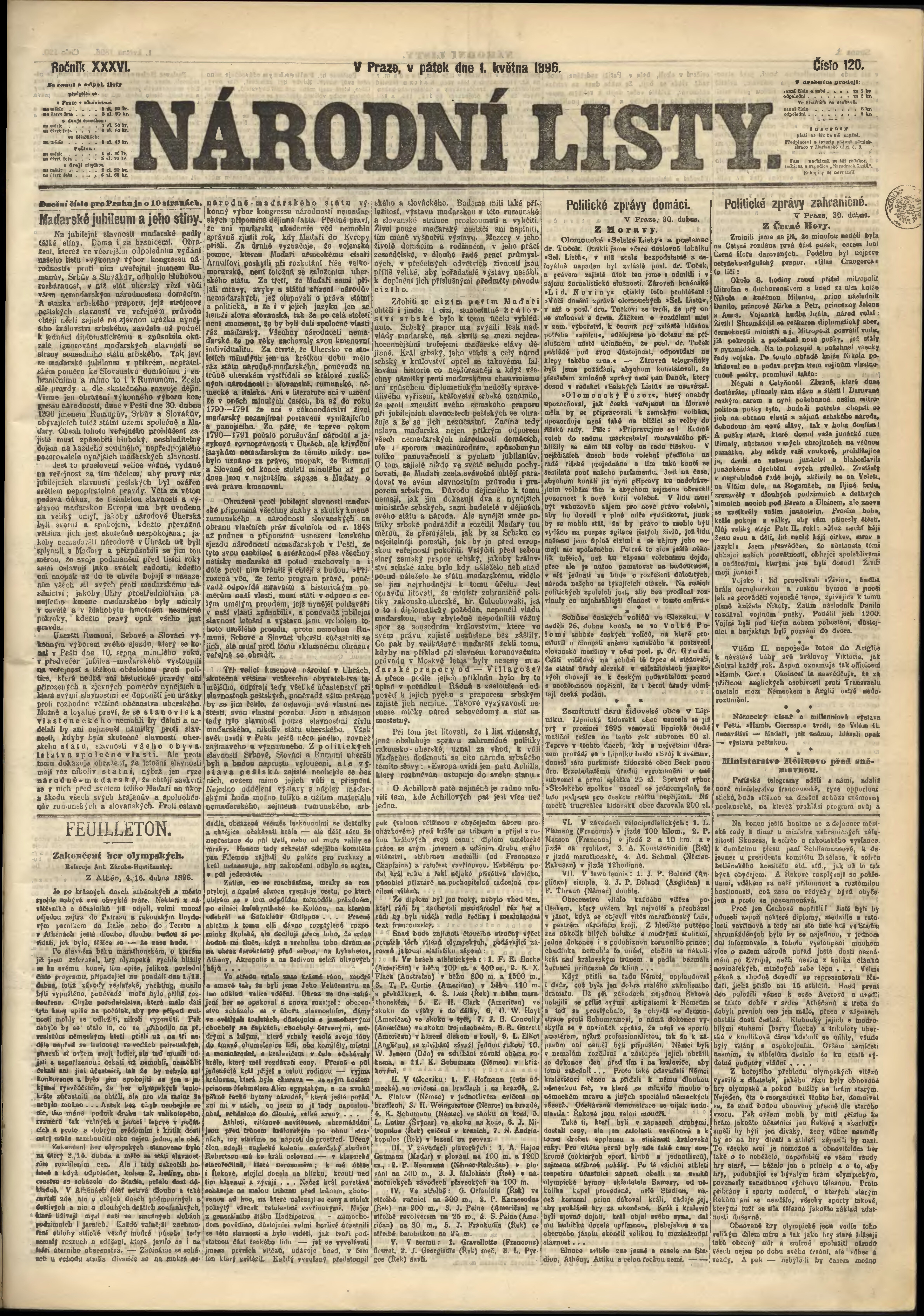 * Datum vydání výtisku: 1.5.1896 Číslo výtisku: 120
