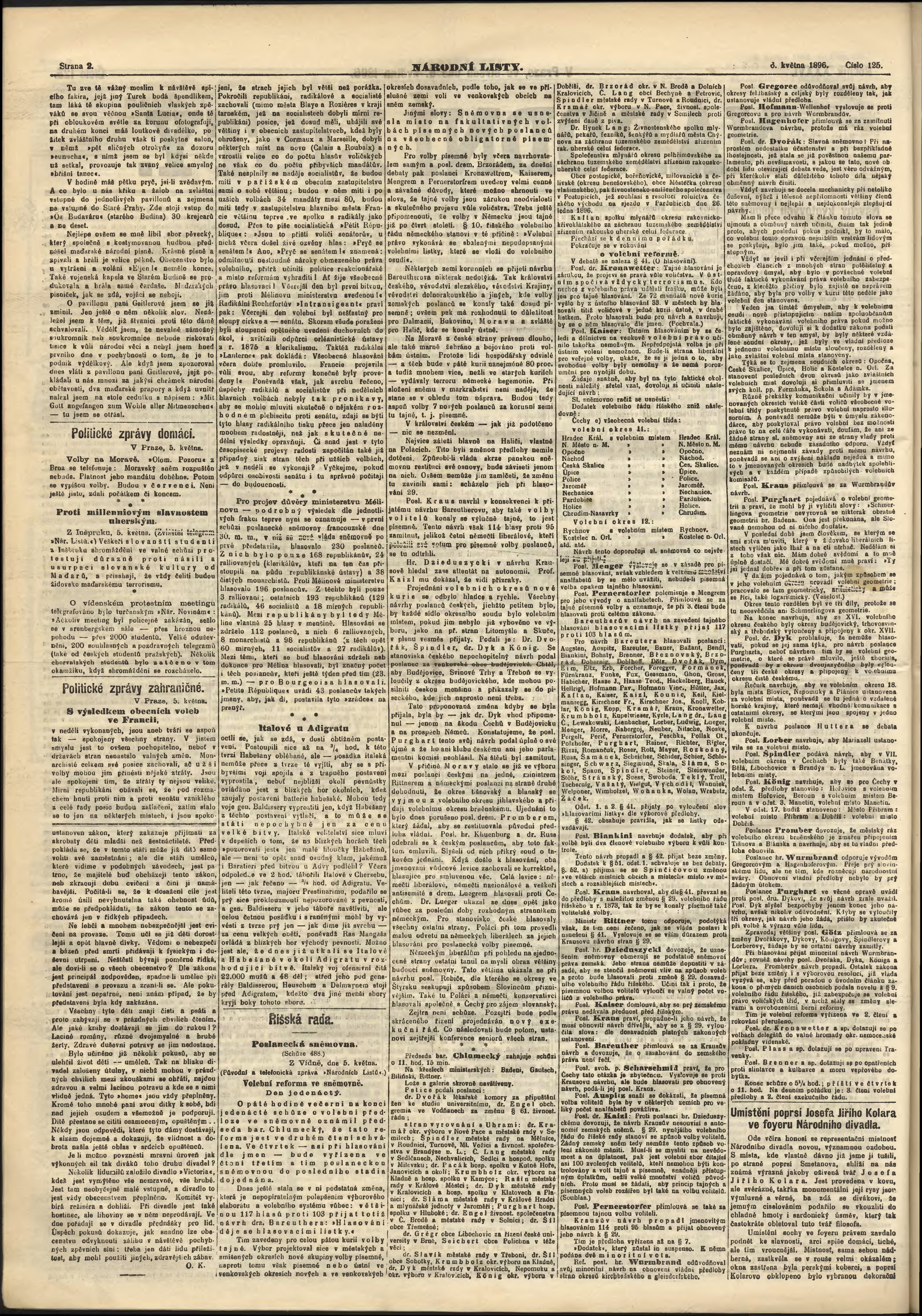 * Datum vydání výtisku: 6.5.1896 Číslo výtisku: 125