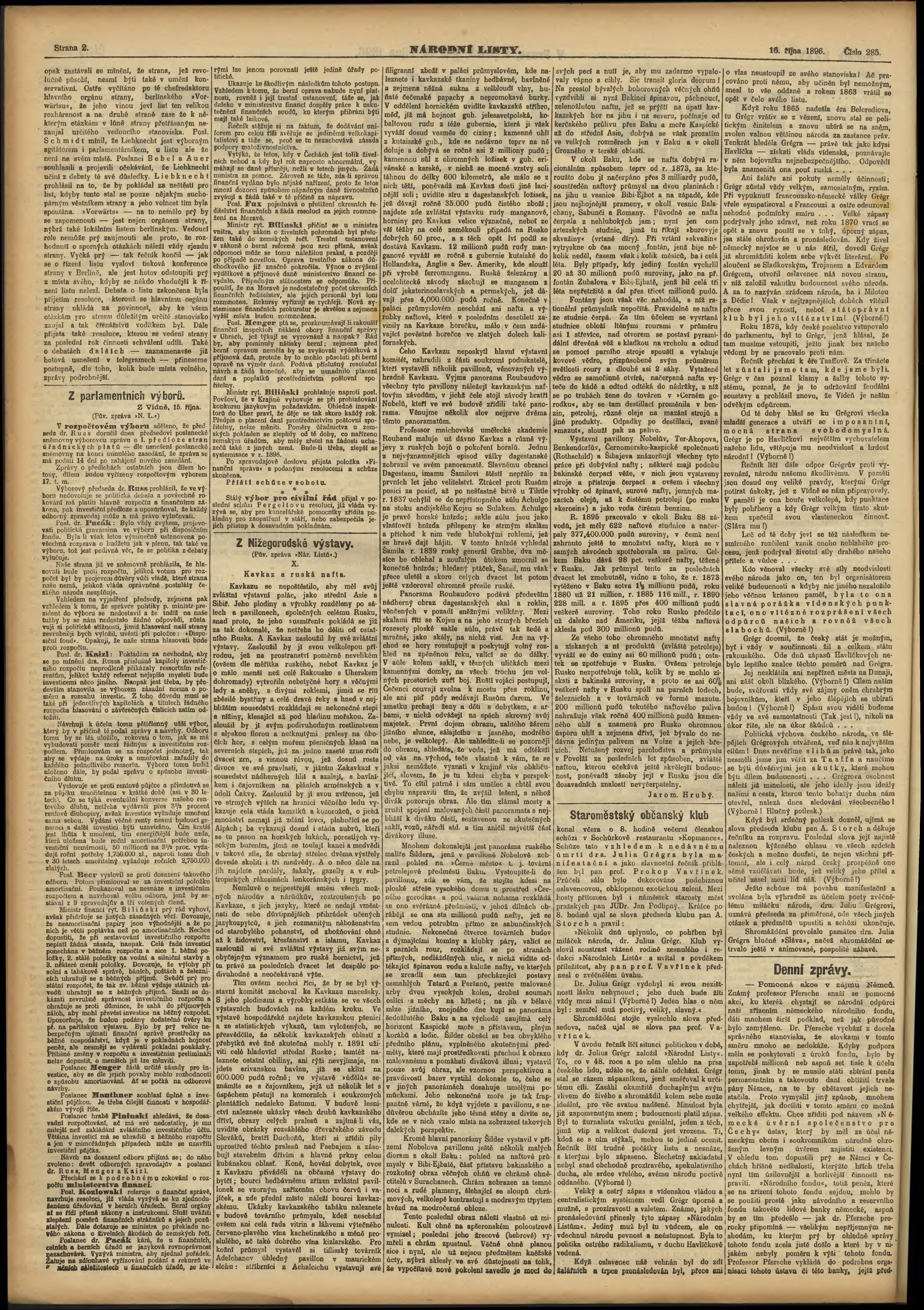 * Datum vydání výtisku: 16.10.1896 Číslo výtisku: 285