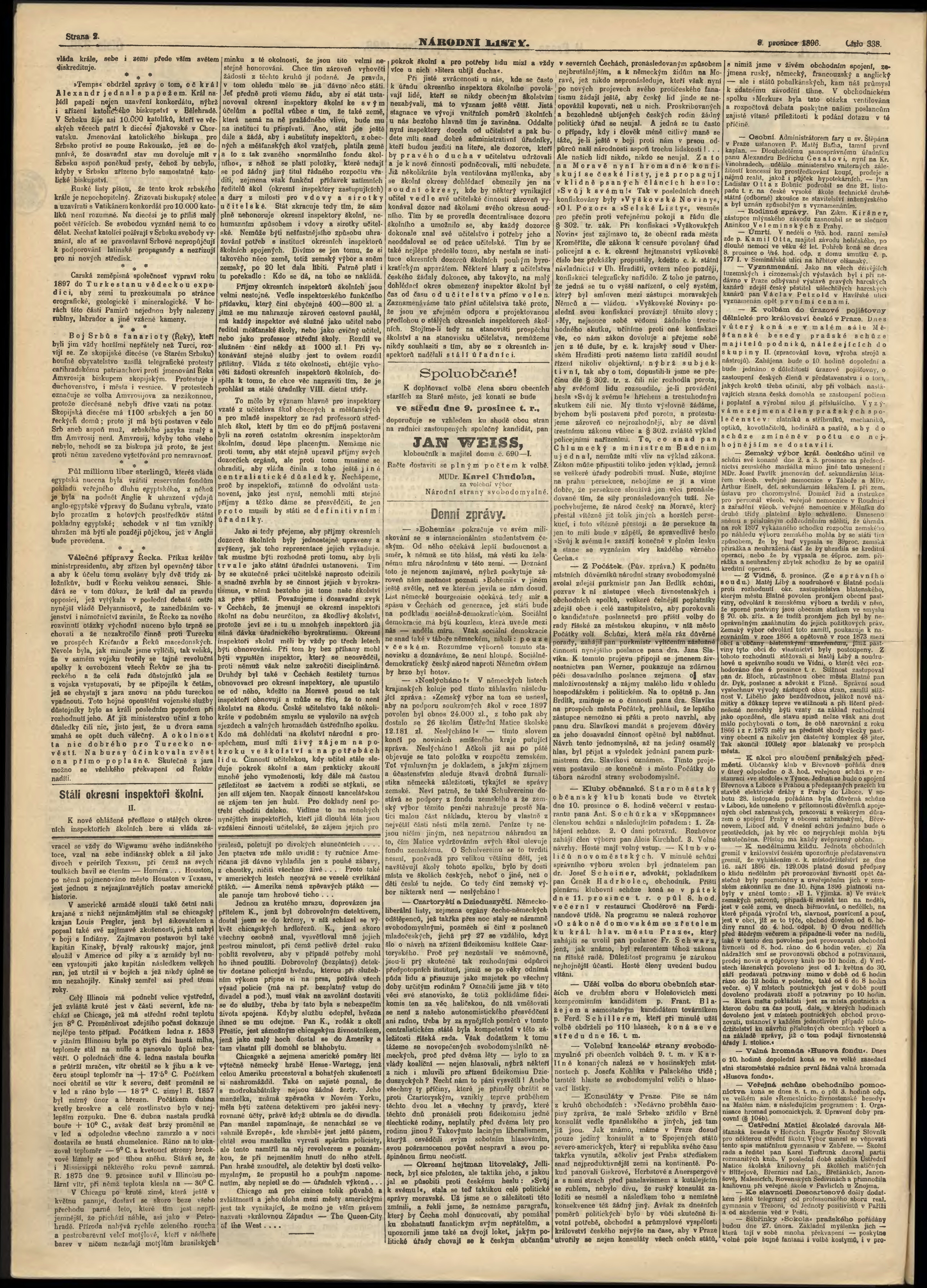 * Datum vydání výtisku: 8.12.1896 Číslo výtisku: 338