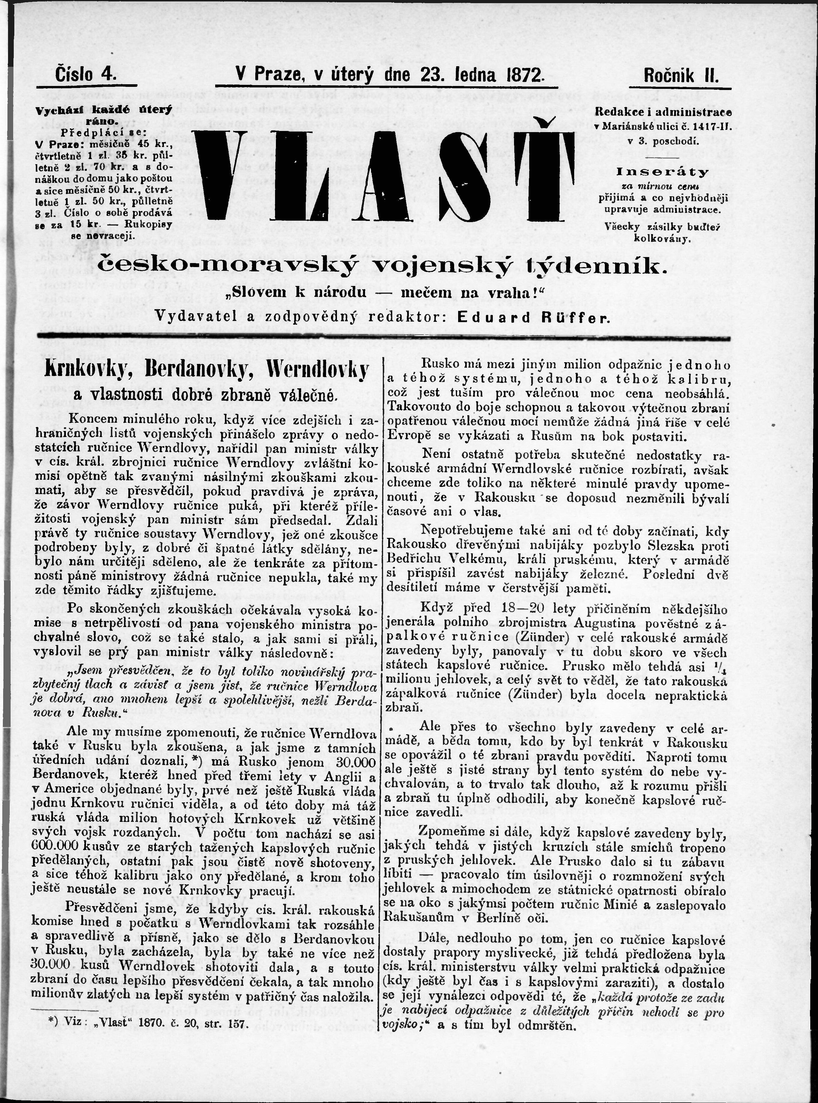 * Datum vydání výtisku: 23.1.1872 Číslo výtisku: 4