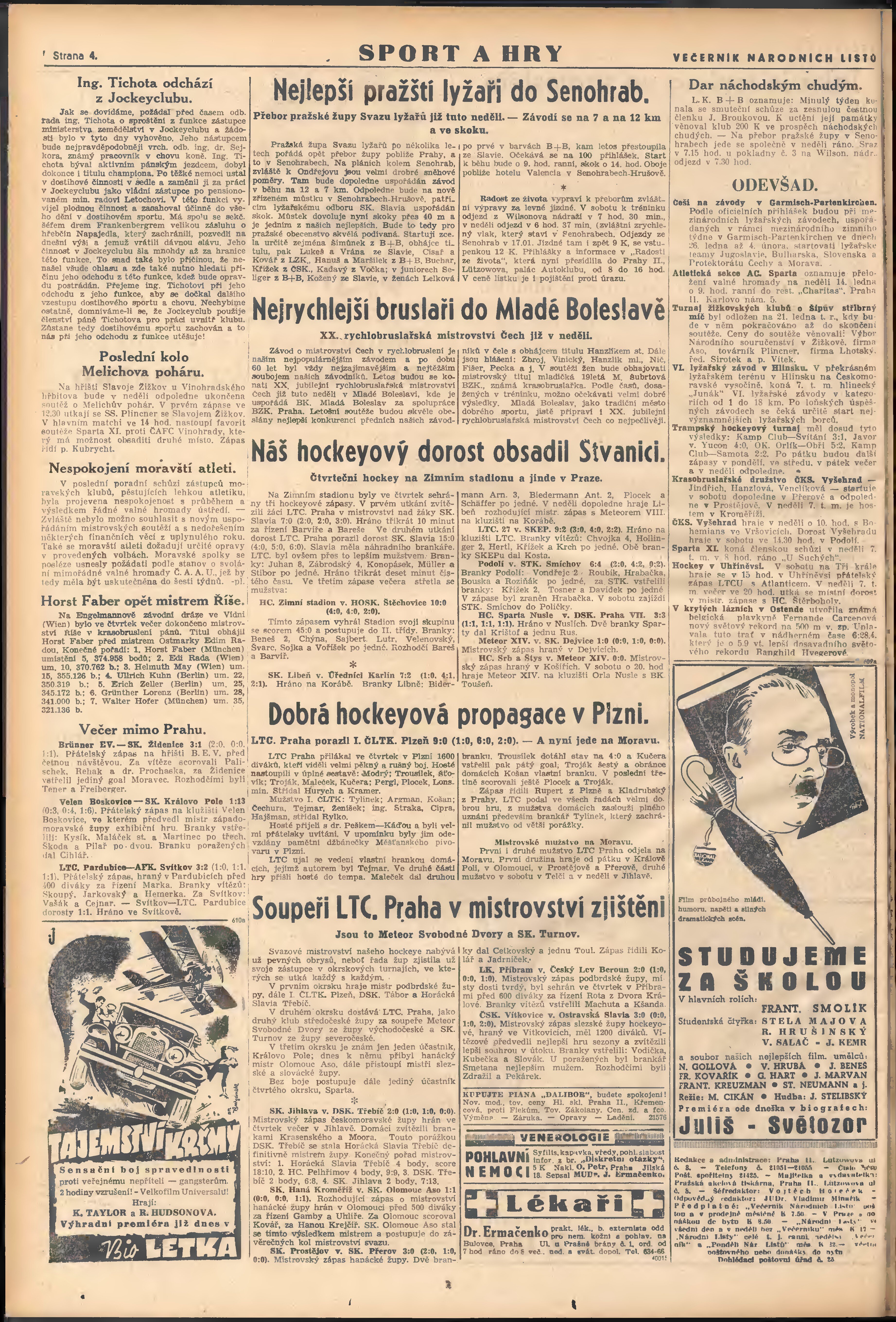 * Datum vydání výtisku: 5.1.1940 Číslo výtisku: 4 Poznámky k výtisku: večerní vydání; 2. vydání;