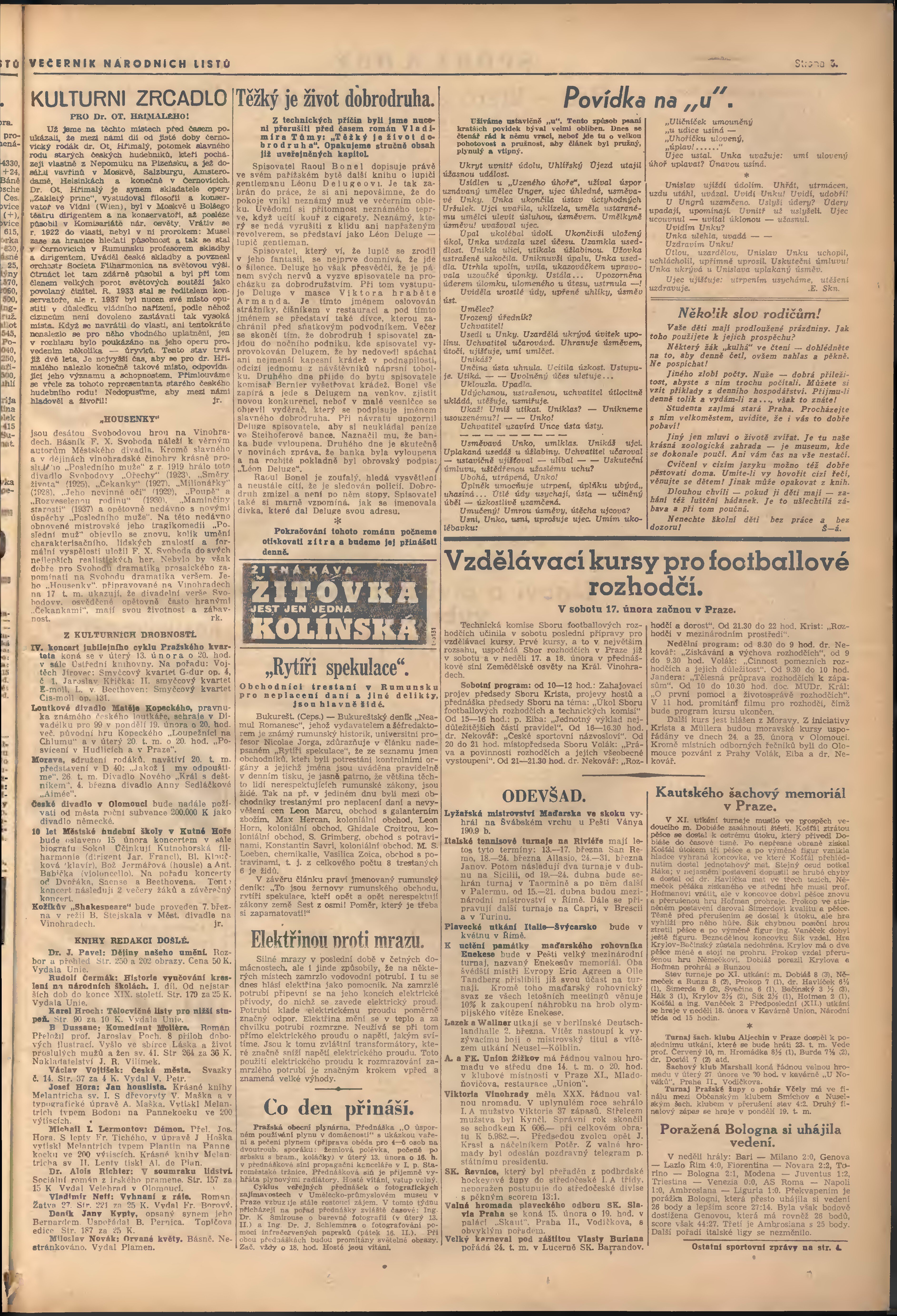 * Datum vydání výtisku: 13.2.1940 Číslo výtisku: 42 Poznámky k výtisku: večerní vydání; 1. vydání;