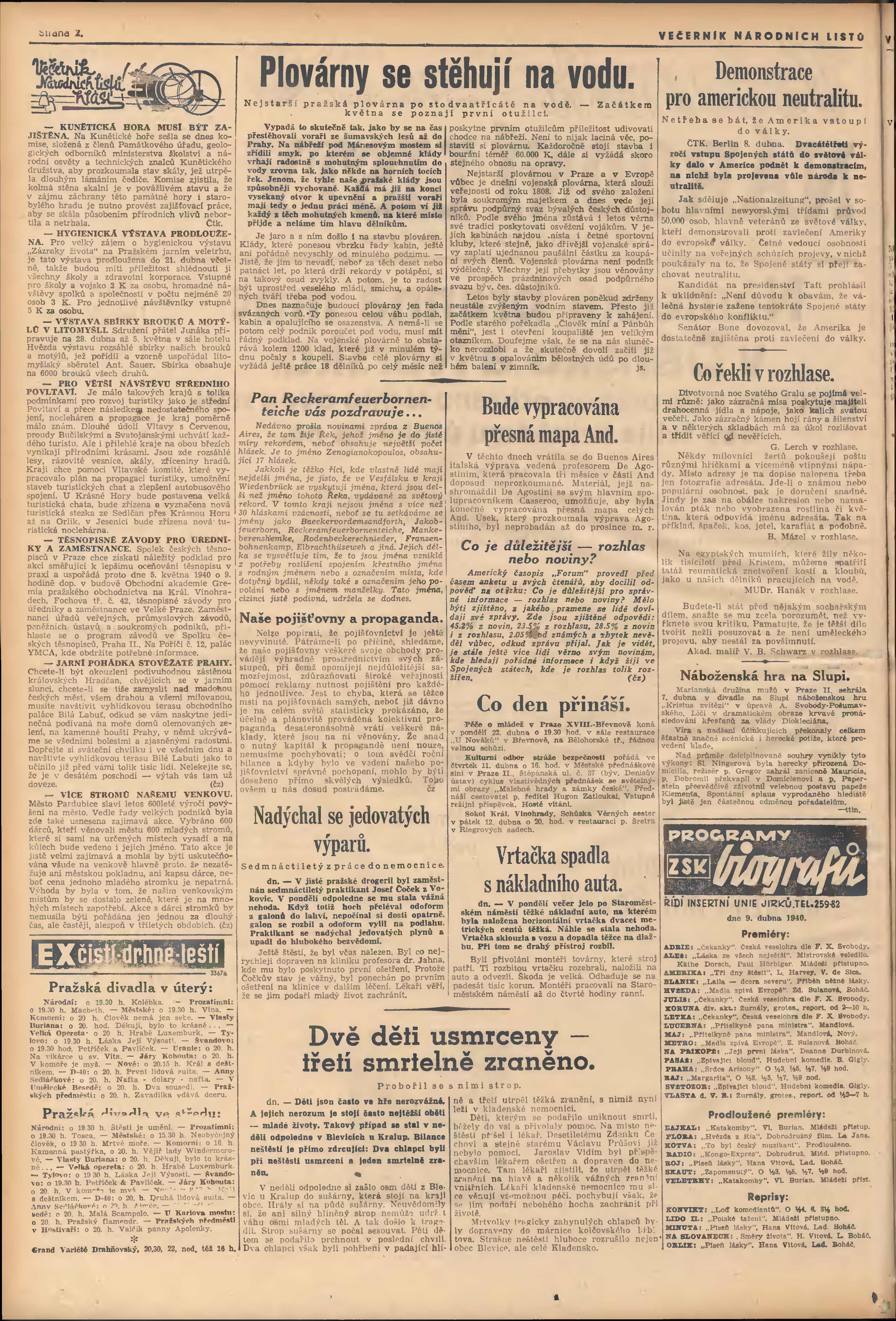 * Datum vydání výtisku: 9.4.1940 Číslo výtisku: 97 Poznámky k výtisku: večerní vydání; 2. vydání;