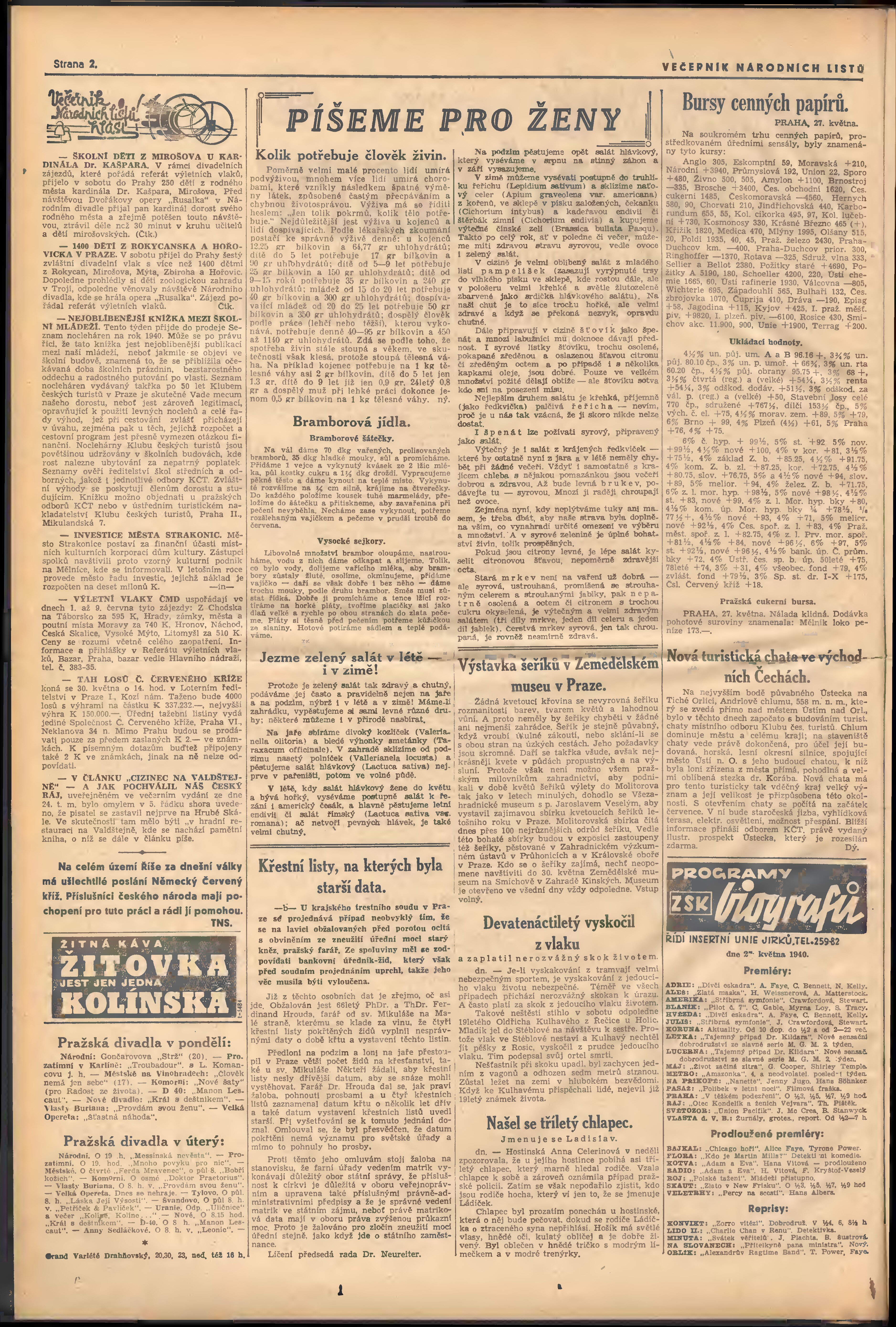 * Datum vydání výtisku: 28.5.1940 Číslo výtisku: 141 Poznámky k výtisku: večerní vydání; 1. vydání;