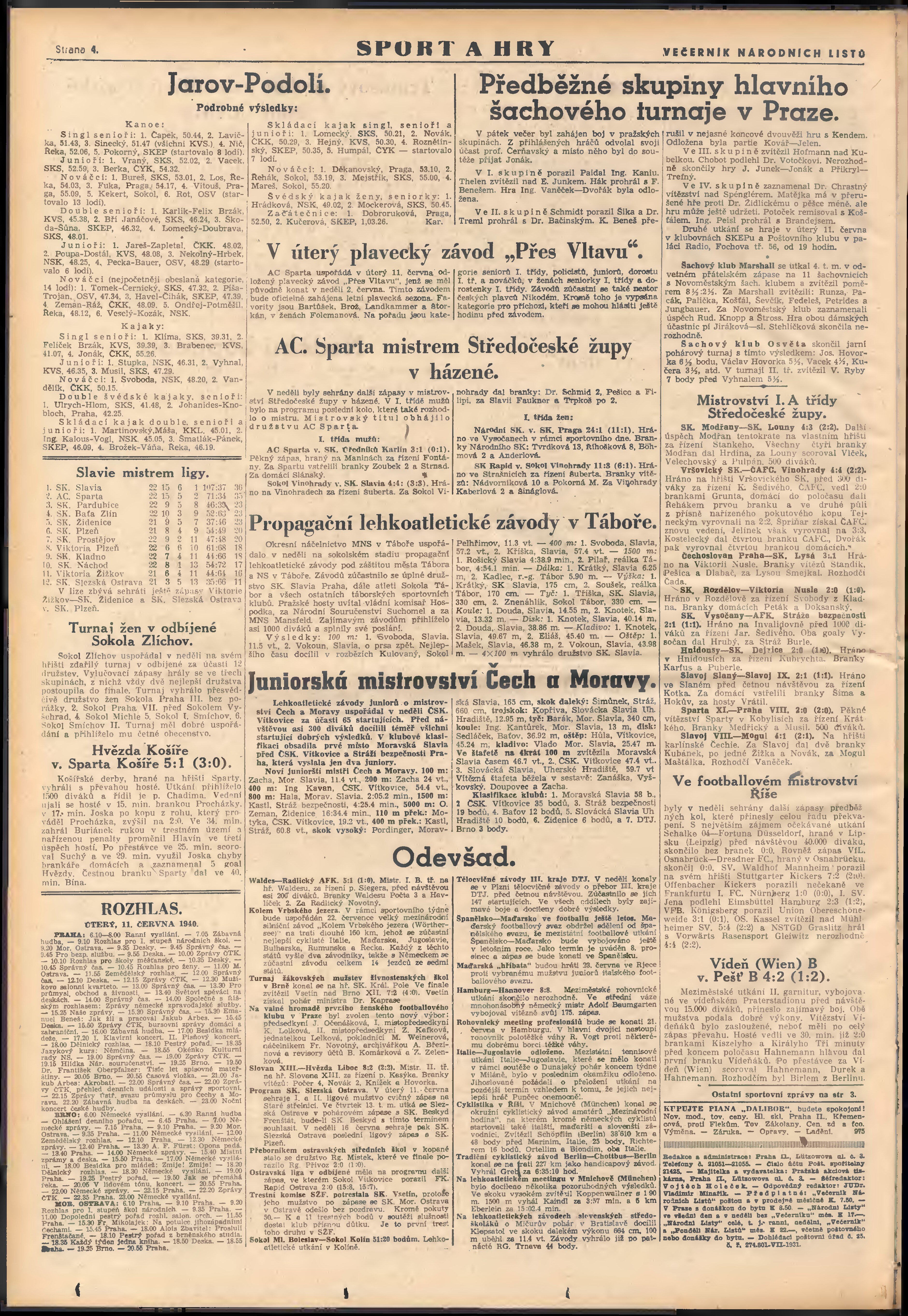 * Datum vydání výtisku: 10.6.1940 Číslo výtisku: 154 Poznámky k výtisku: večerní vydání; 2. vydání;