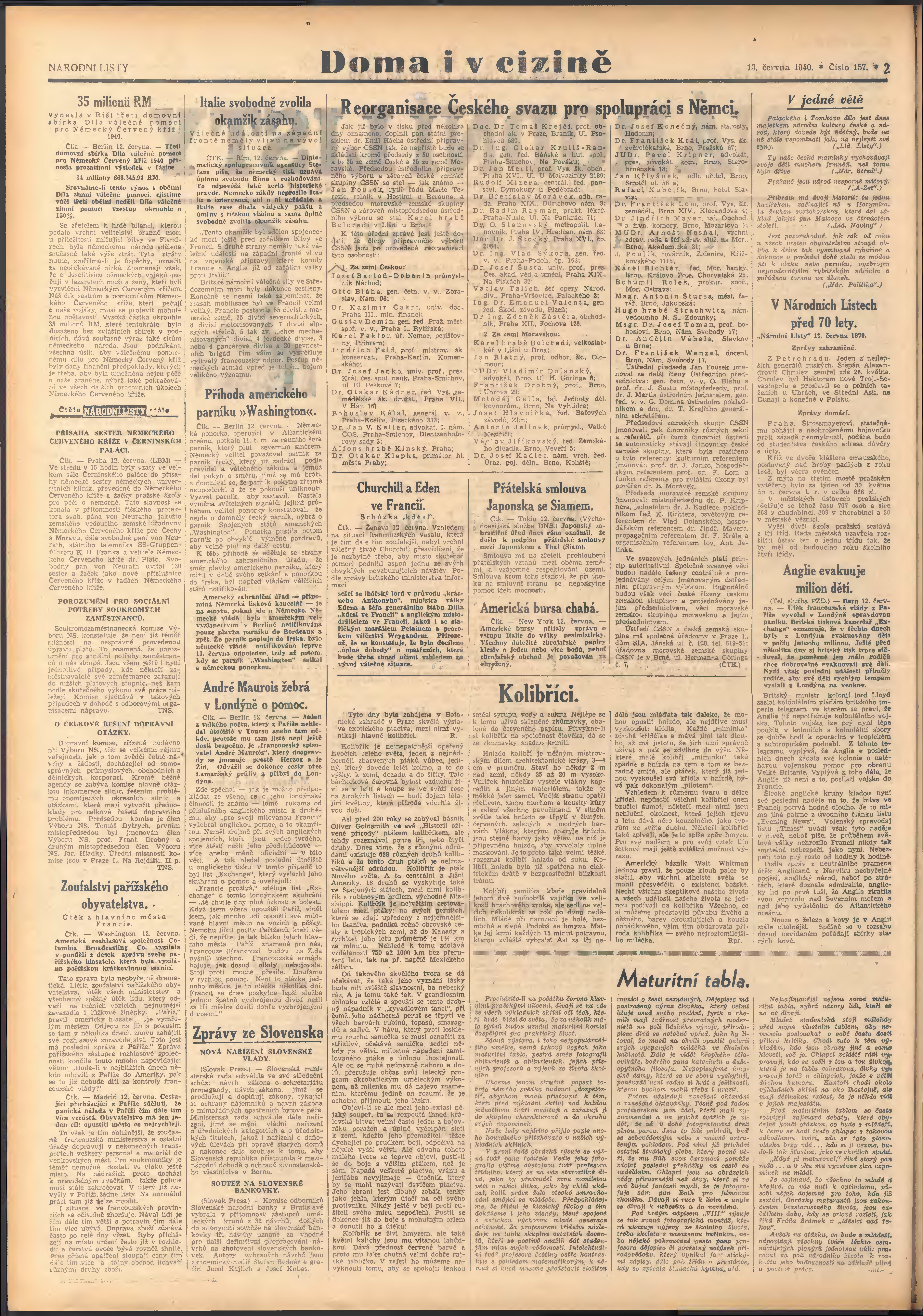 * Datum vydání výtisku: 13.6.1940 Číslo výtisku: 157 Poznámky k výtisku: 2. vydání;