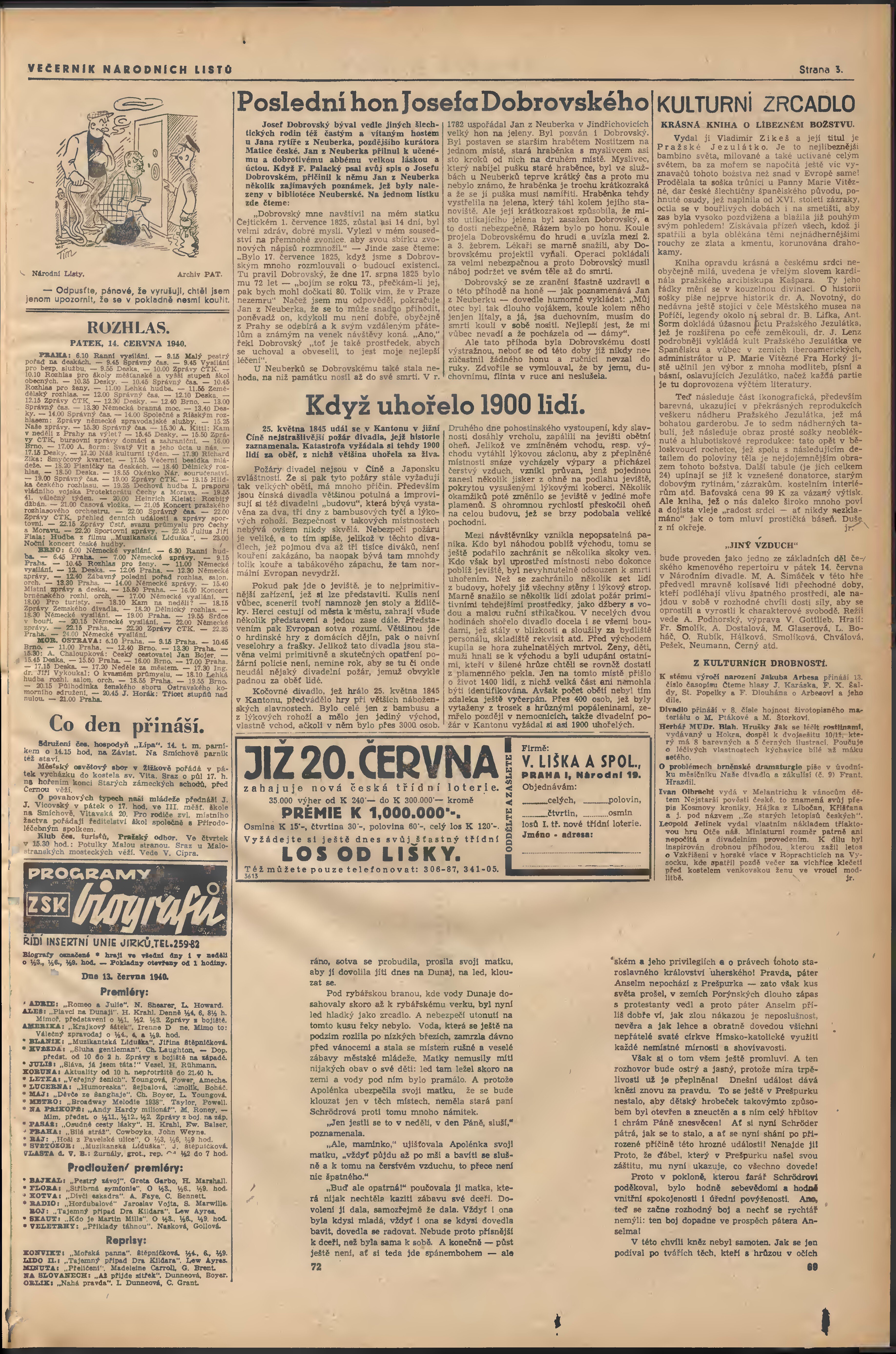 * Datum vydání výtisku: 13.6.1940 Číslo výtisku: 157 Poznámky k výtisku: večerní vydání; 1. vydání;