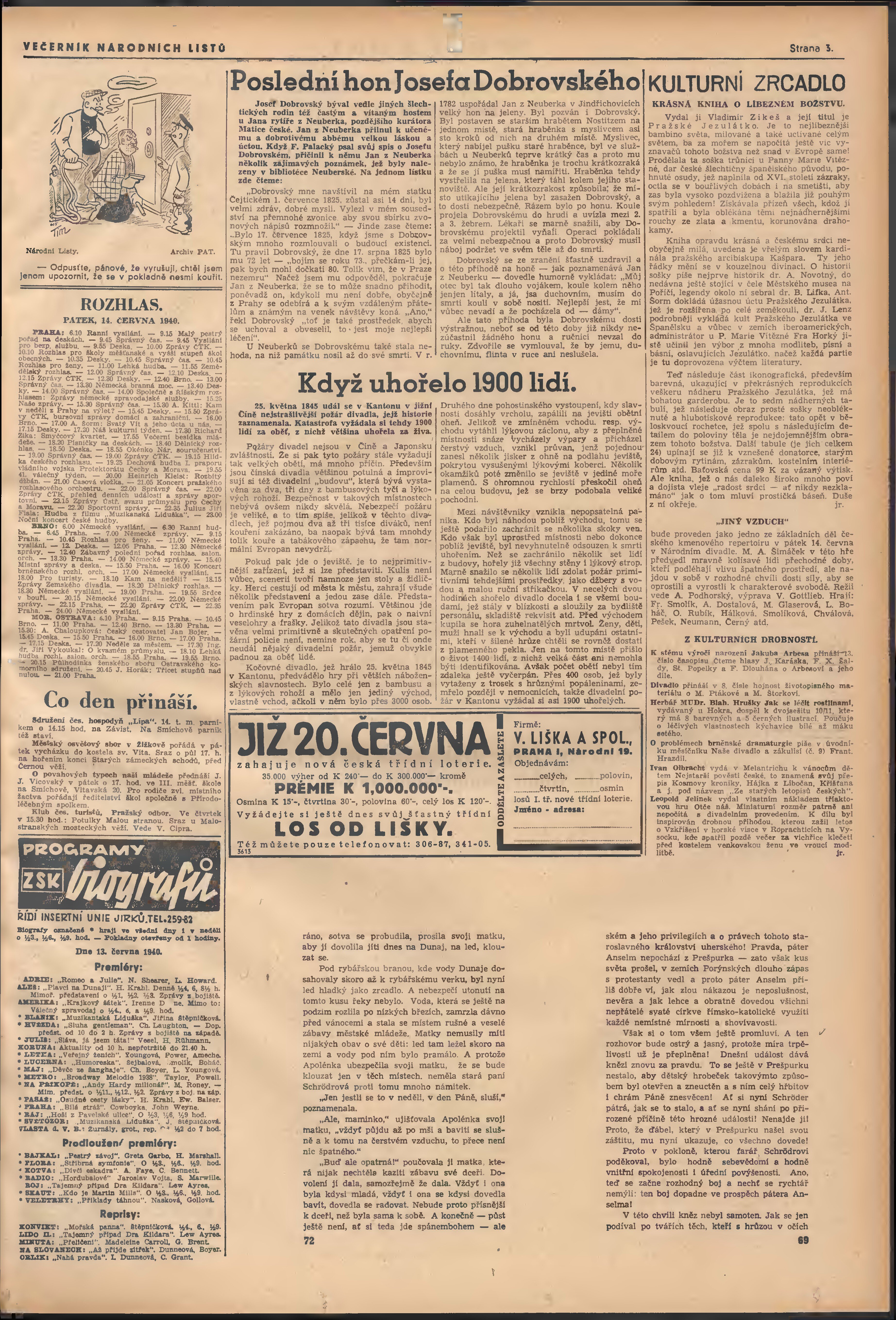 * Datum vydání výtisku: 13.6.1940 Číslo výtisku: 157 Poznámky k výtisku: večerní vydání; 2. vydání;