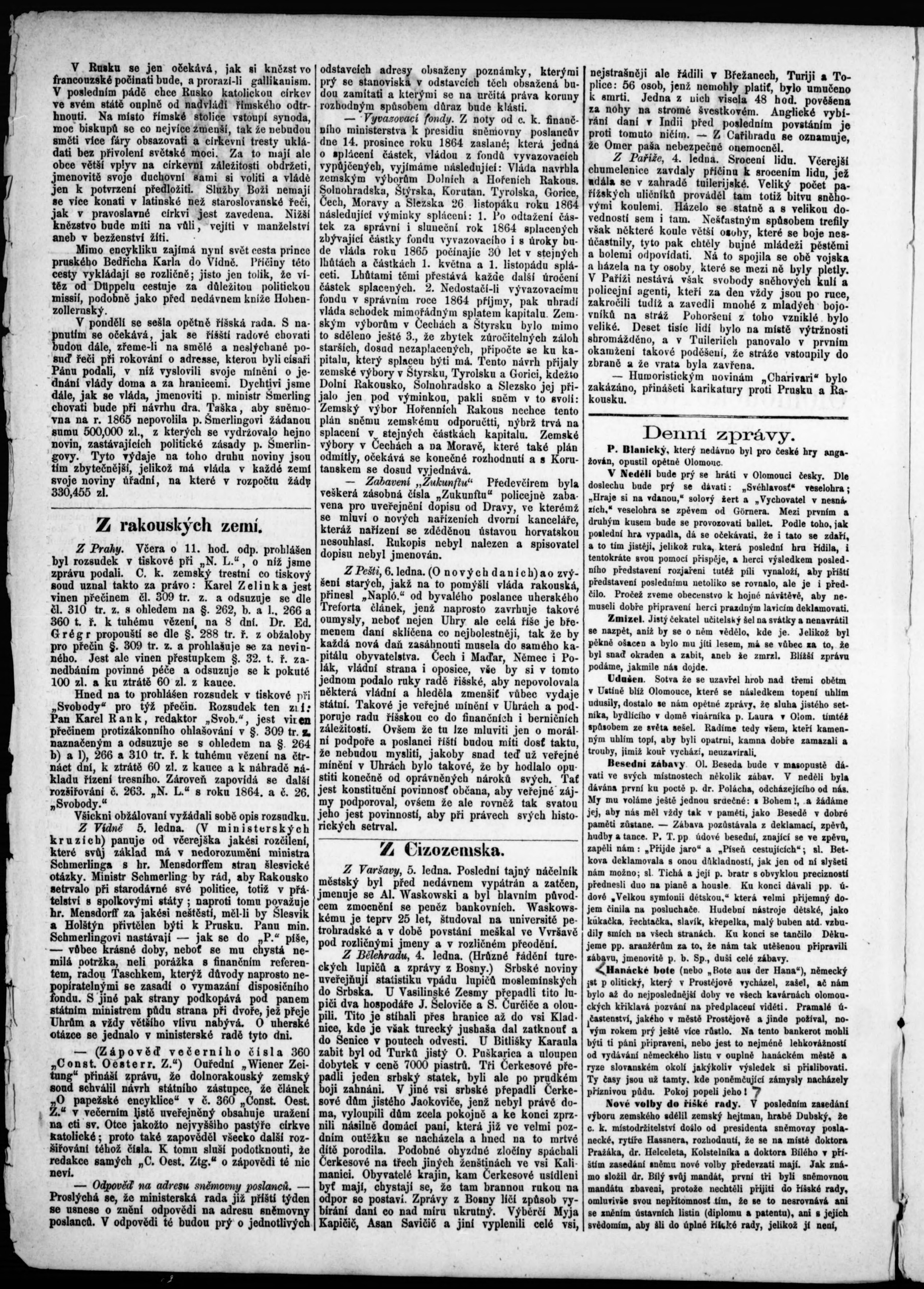 * Datum vydání výtisku: 11.1.1865 Číslo výtisku: 3