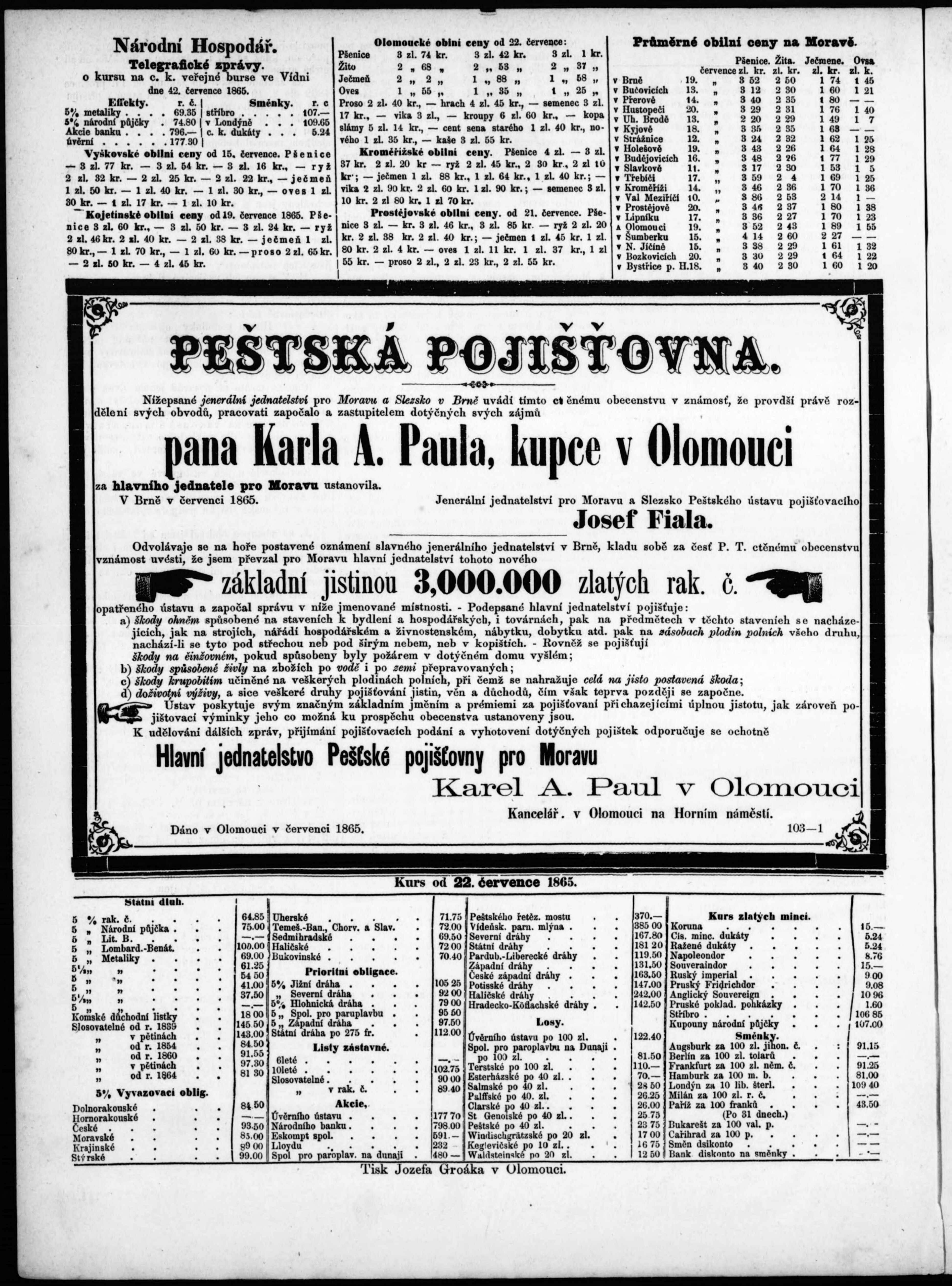 * Datum vydání výtisku: 26.7.1865 Číslo výtisku: 59