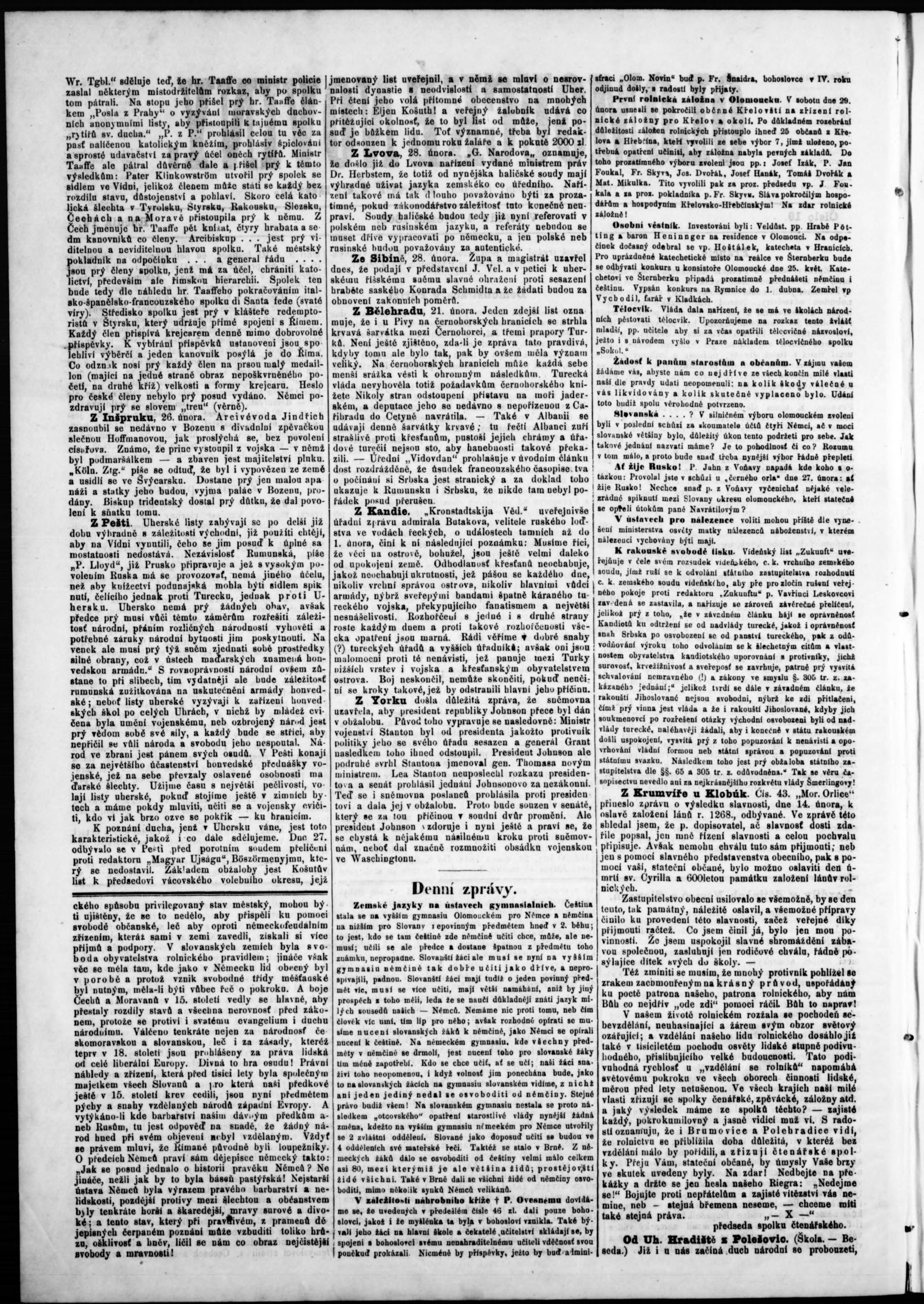 * Datum vydání výtisku: 4.3.1868 Číslo výtisku: 19