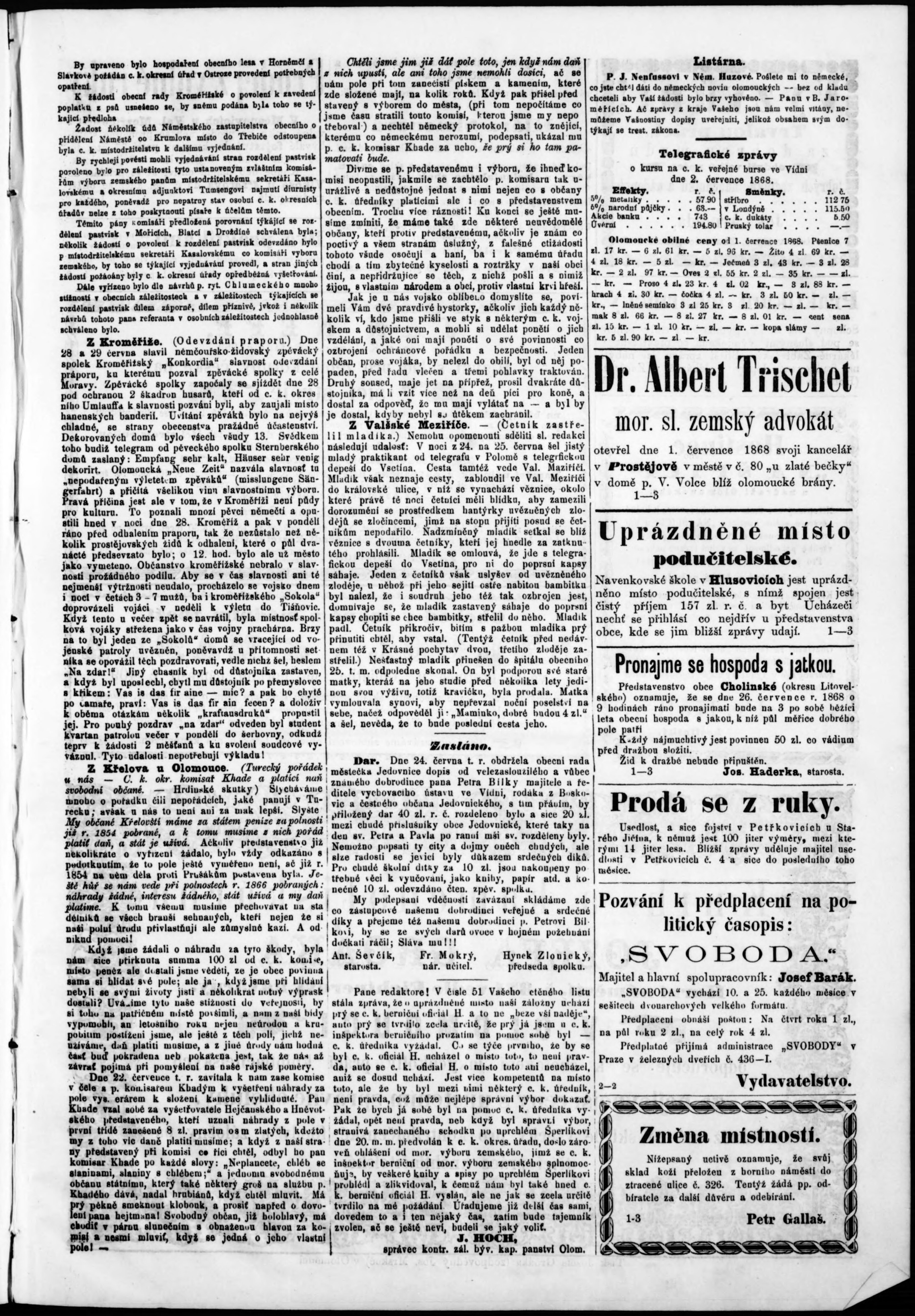* Datum vydání výtisku: 4.7.1868 Číslo výtisku: 54