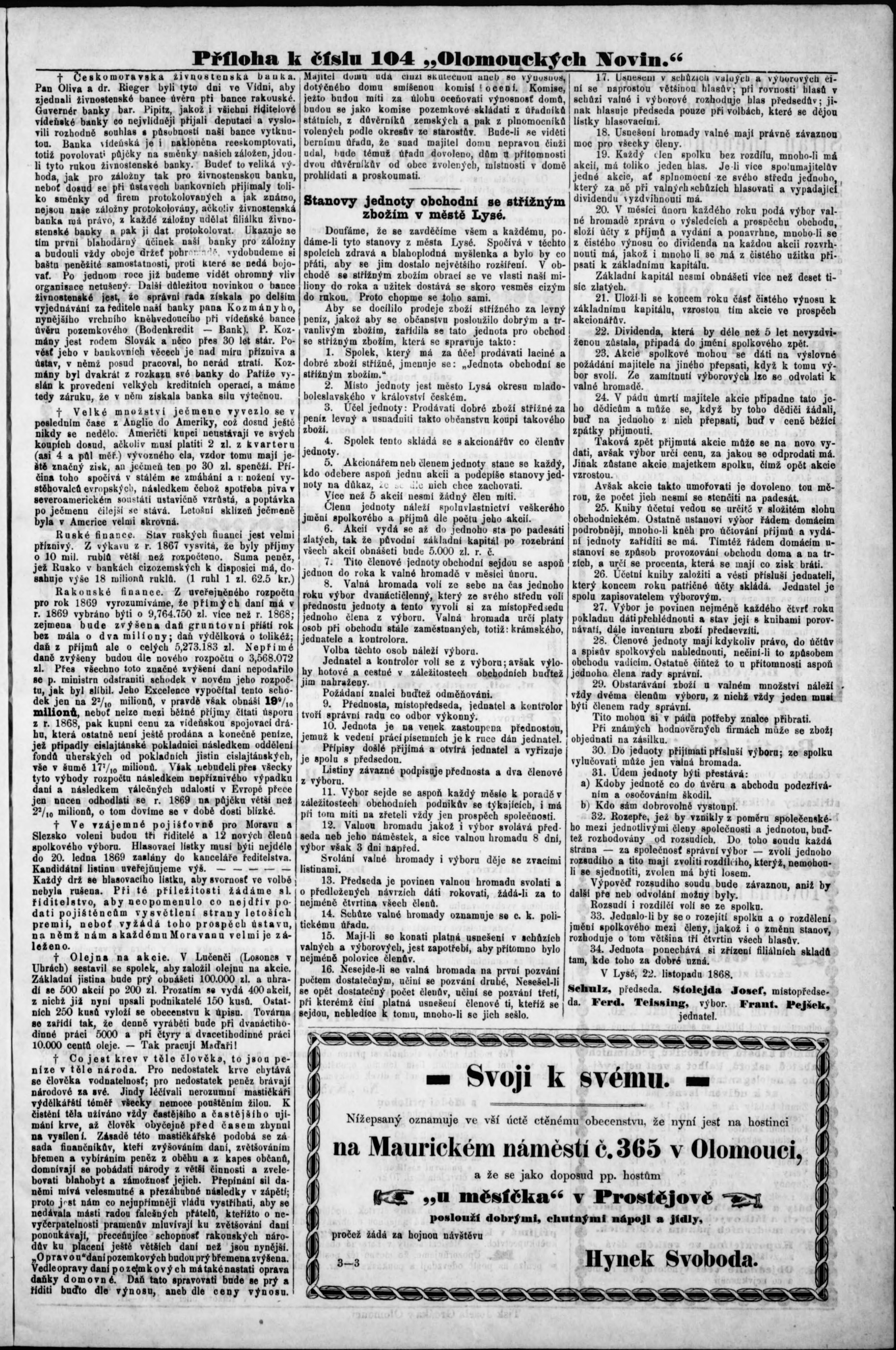 * Datum vydání výtisku: 30.12.1868 Číslo výtisku: 104 Typ výtisku: příloha Poznámky k výtisku: příloha