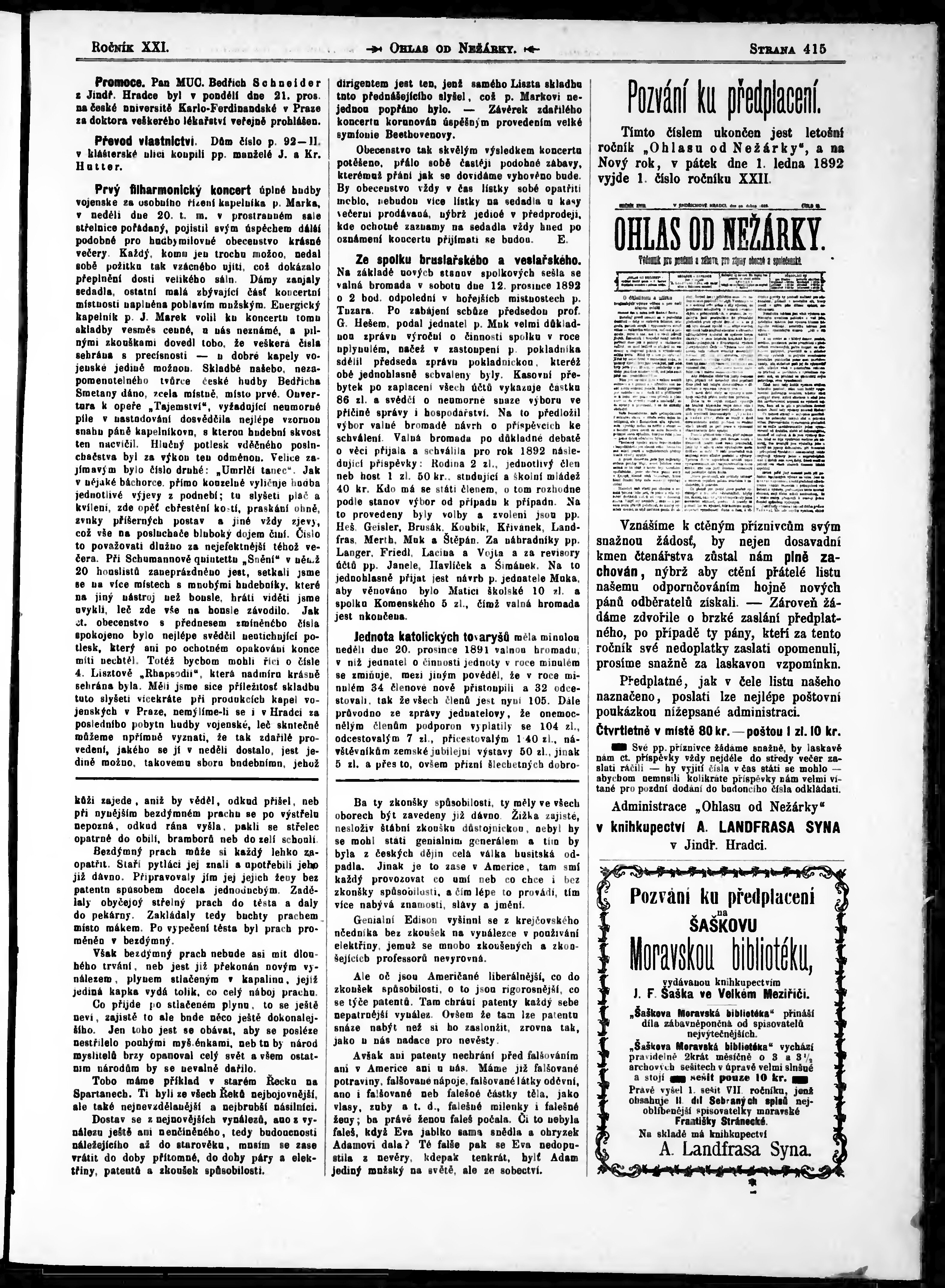 * Datum vydání ročníku: 1891 Číslo ročníku: 21