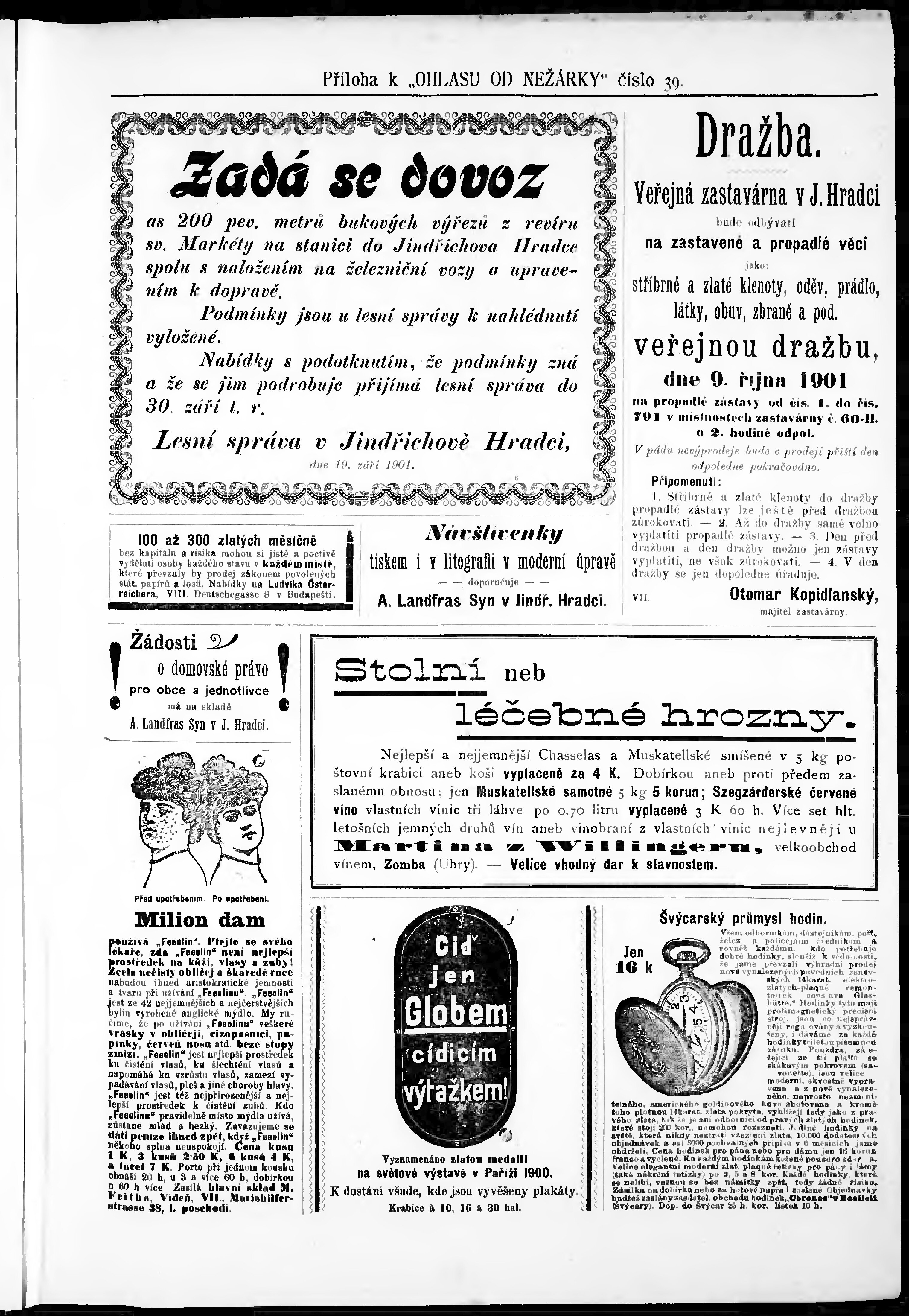 * Datum vydání výtisku: 28.9.1901 Číslo výtisku: 39