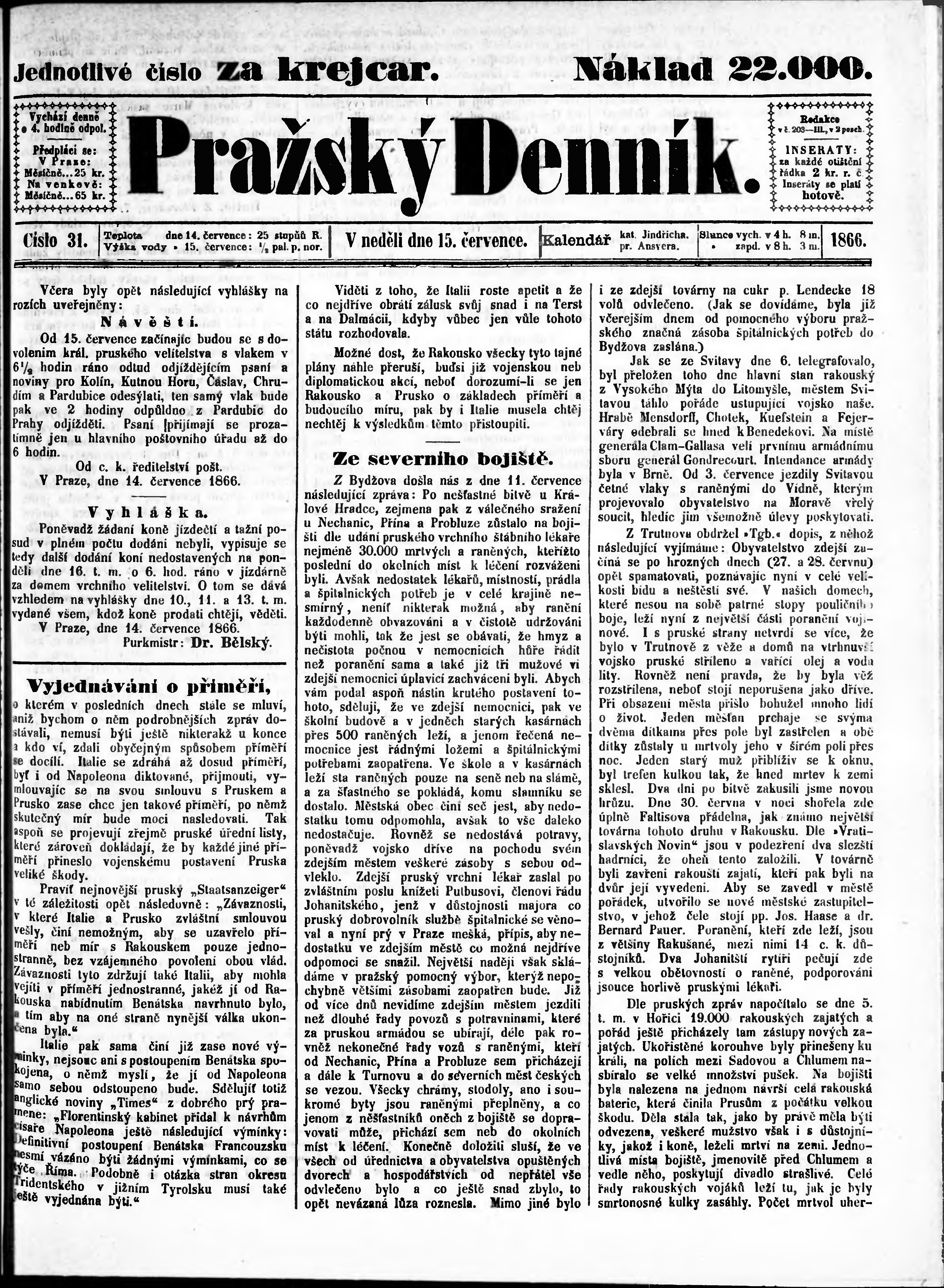 * Datum vydání výtisku: 15.7.1866 Číslo výtisku: 31