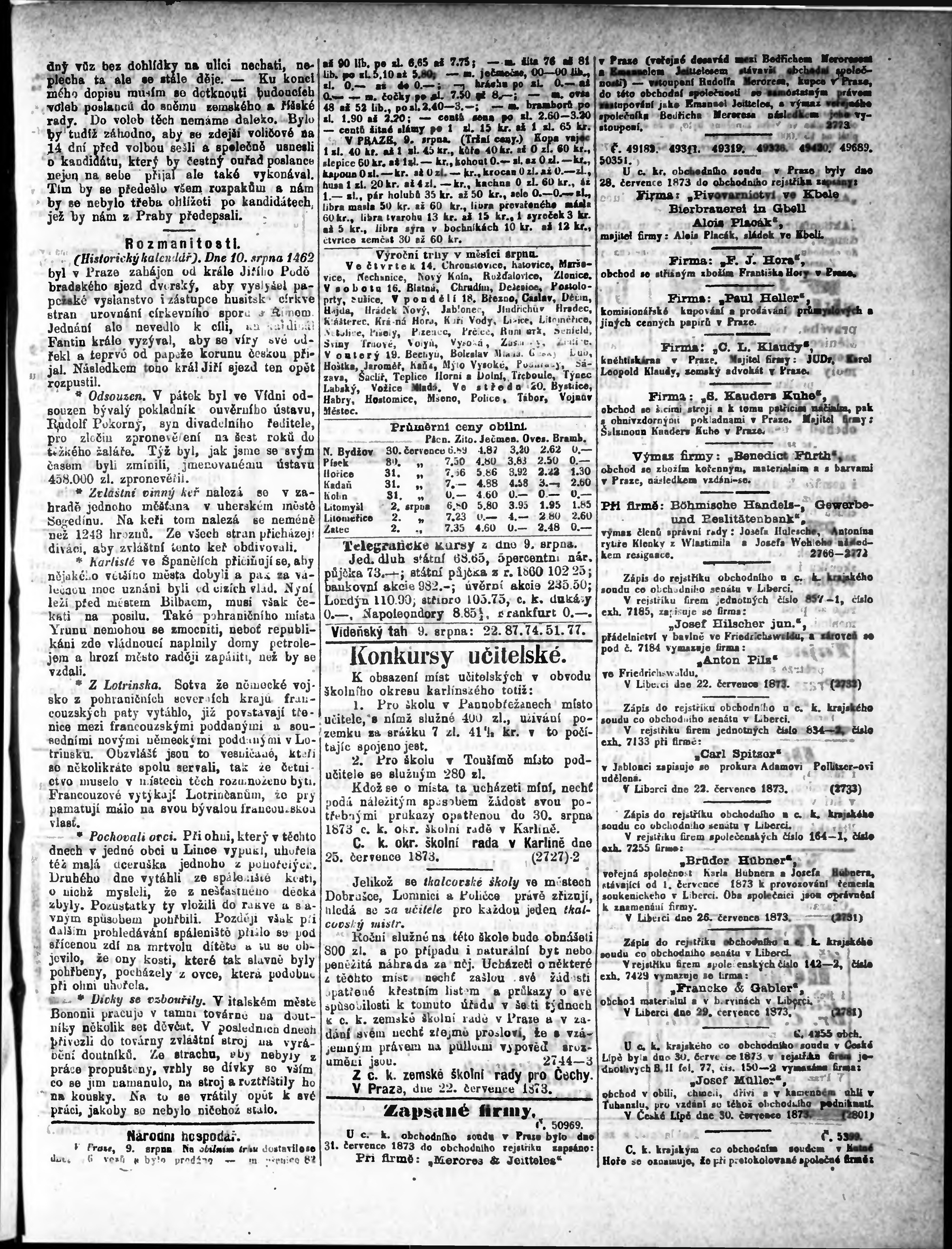 * Datum vydání výtisku: 10.8.1873 Číslo výtisku: 190