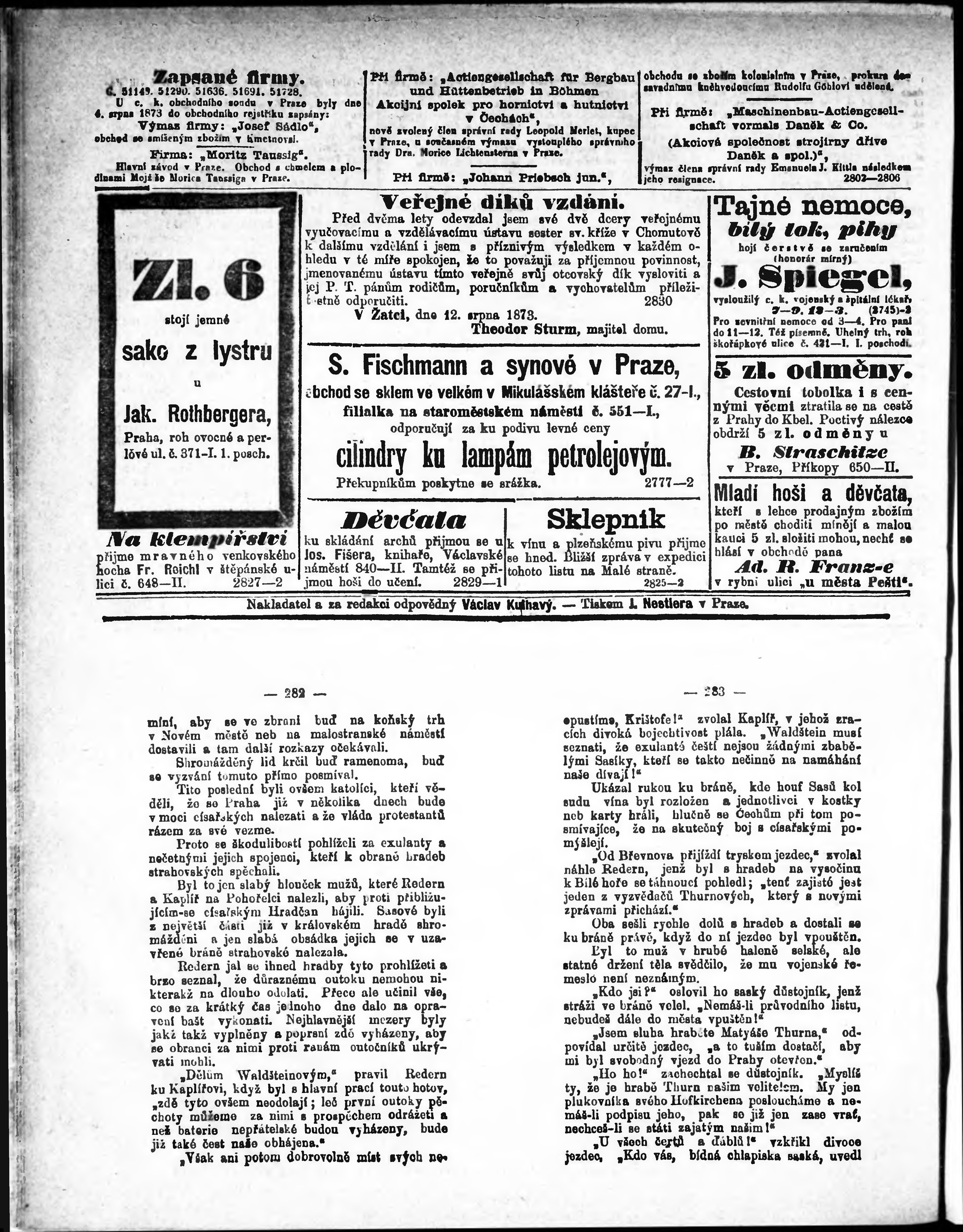 * Datum vydání výtisku: 13.8.1873 Číslo výtisku: 192