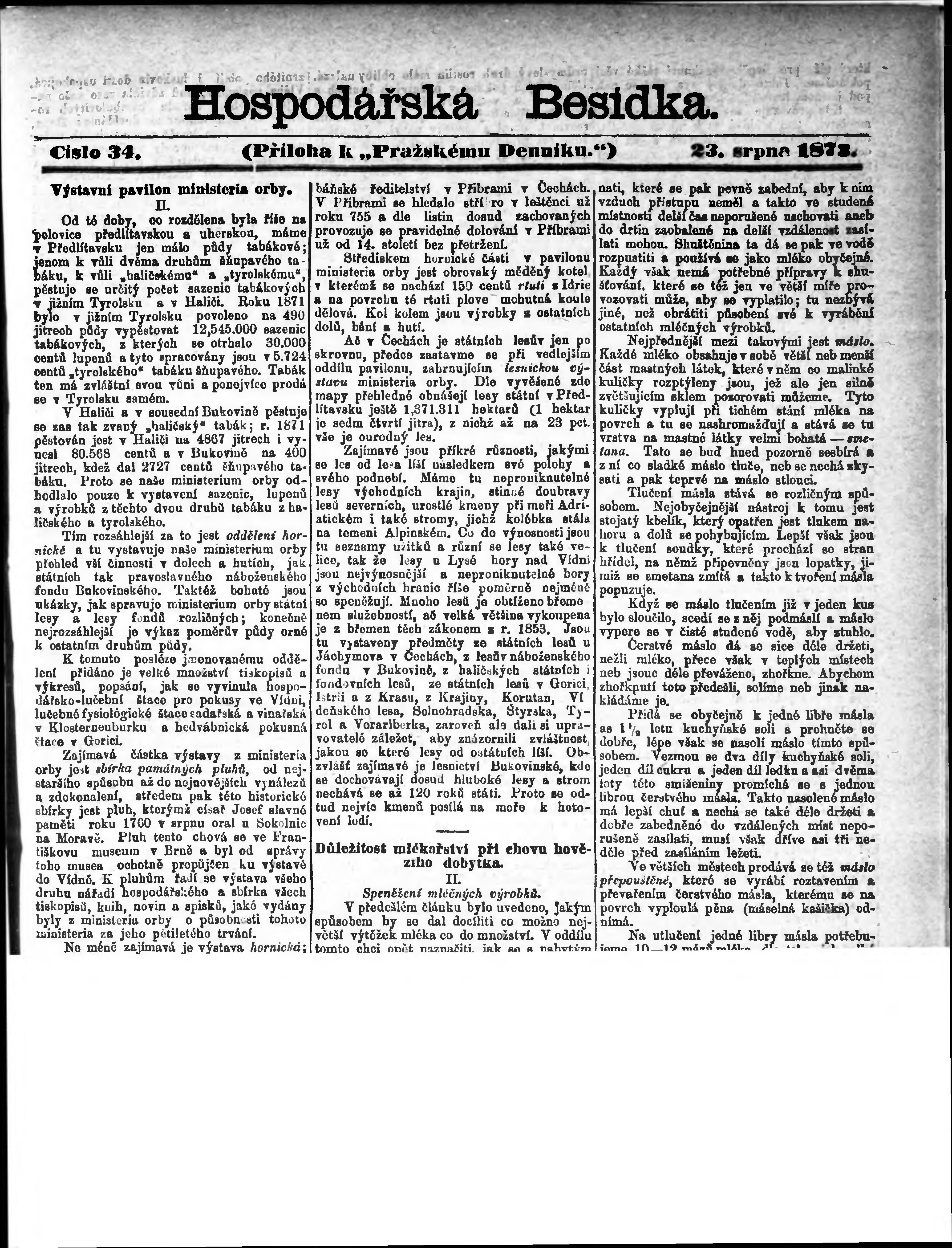 * Datum vydání výtisku: 23.8.1873 Číslo výtisku: 34 Typ výtisku: příloha