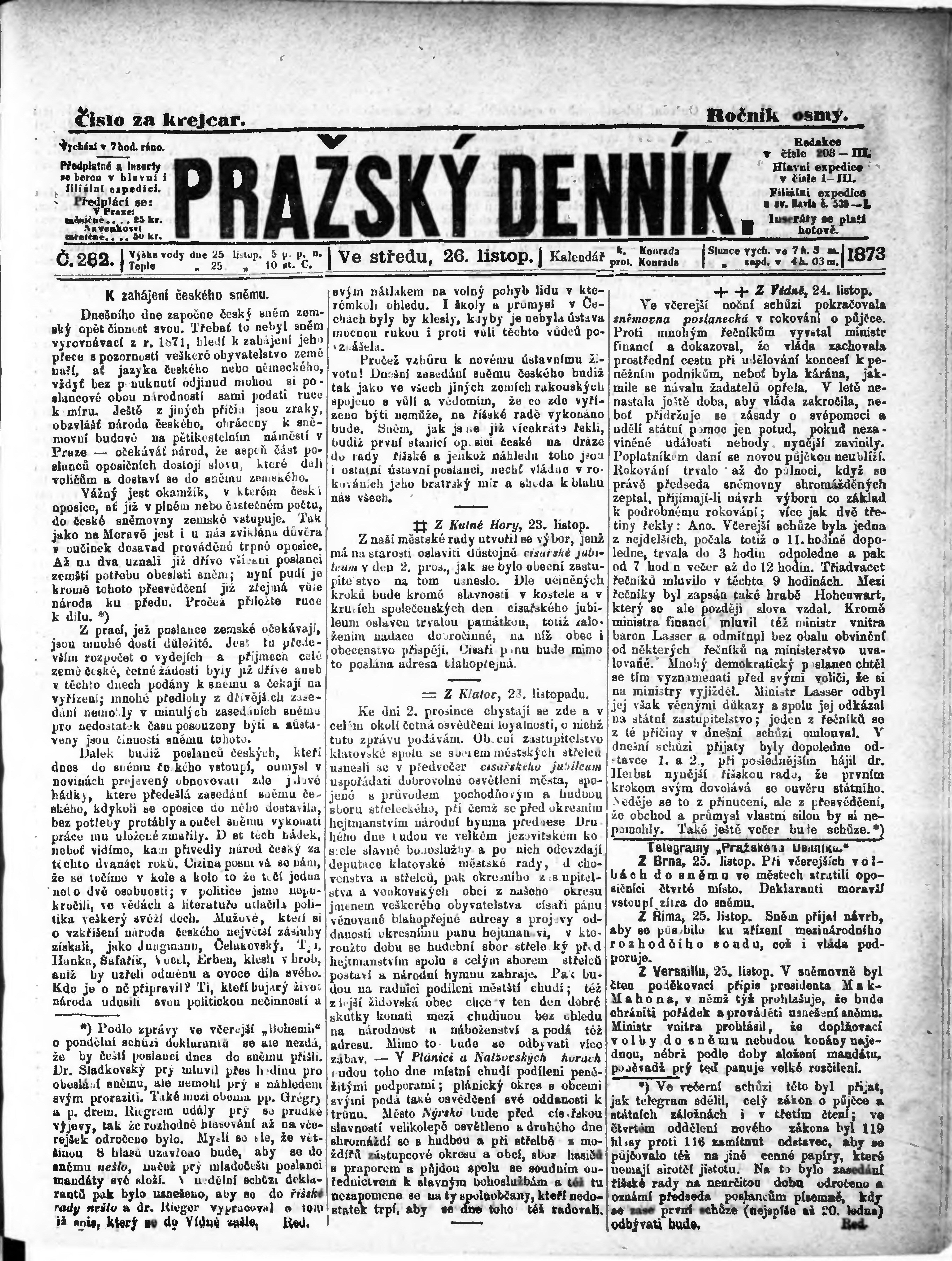 * Datum vydání výtisku: 26.11.1873 Číslo výtisku: 282