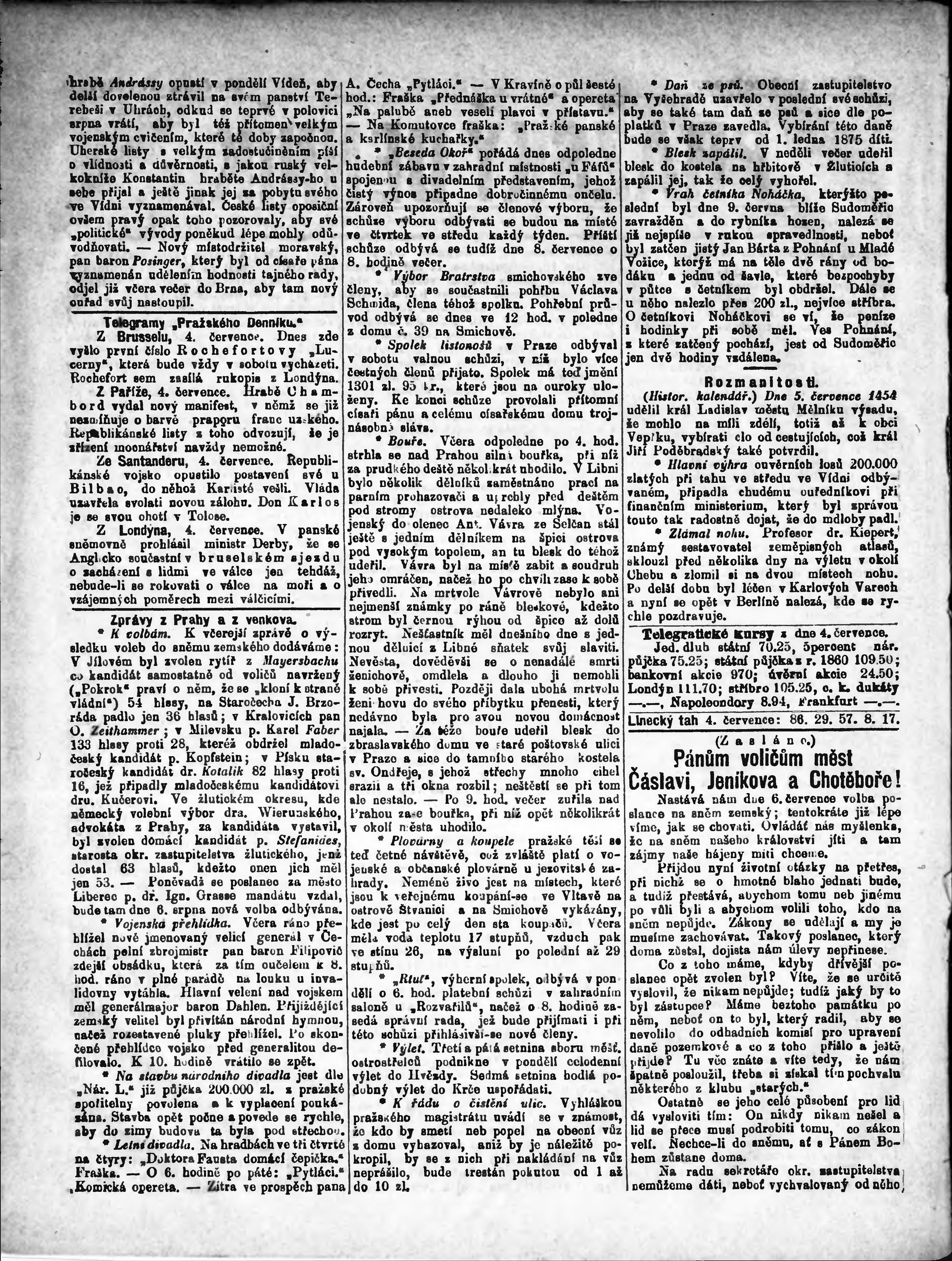 * Datum vydání výtisku: 5.7.1874 Číslo výtisku: 155