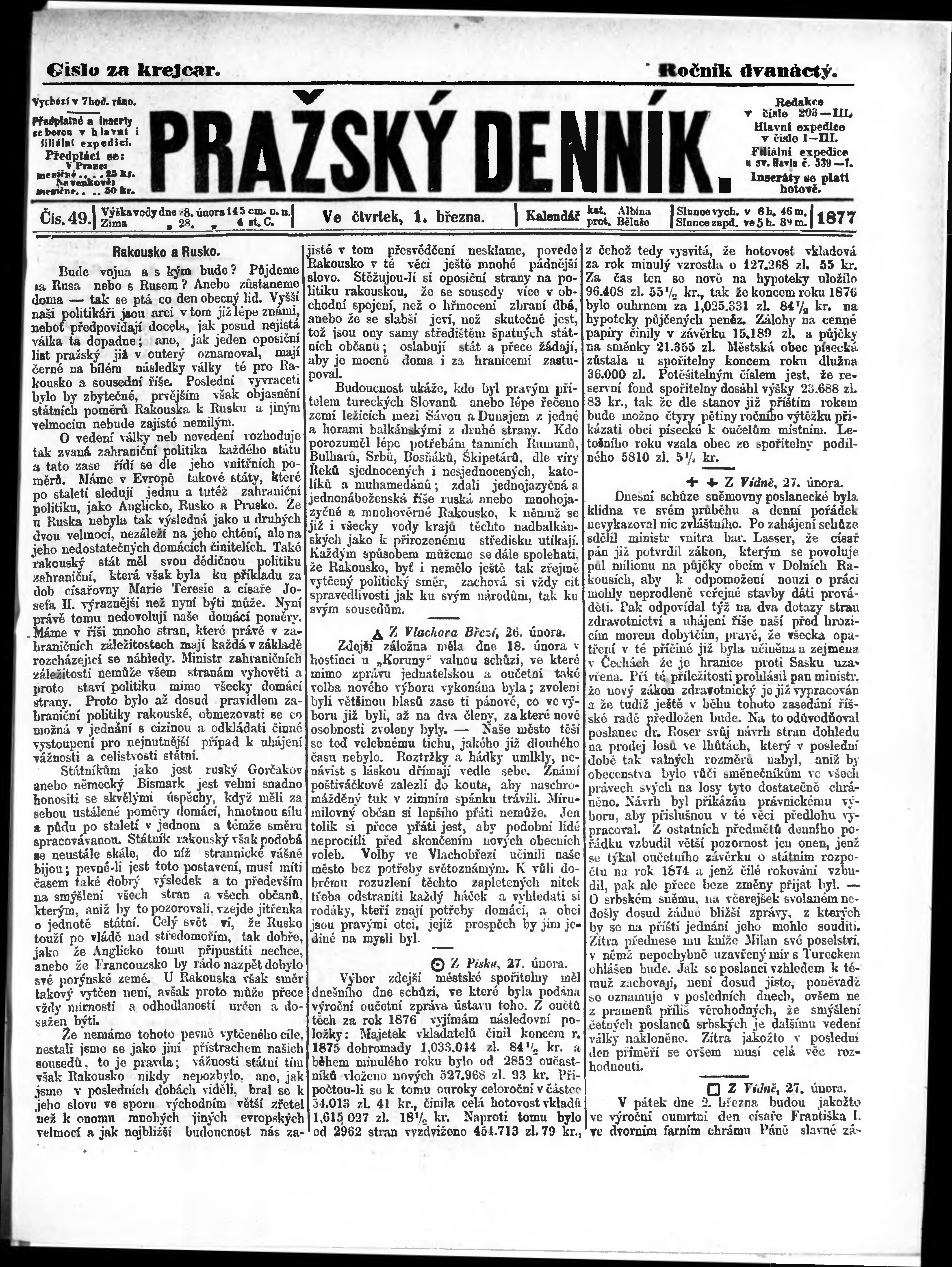 * Datum vydání výtisku: 1.3.1877 Číslo výtisku: 49
