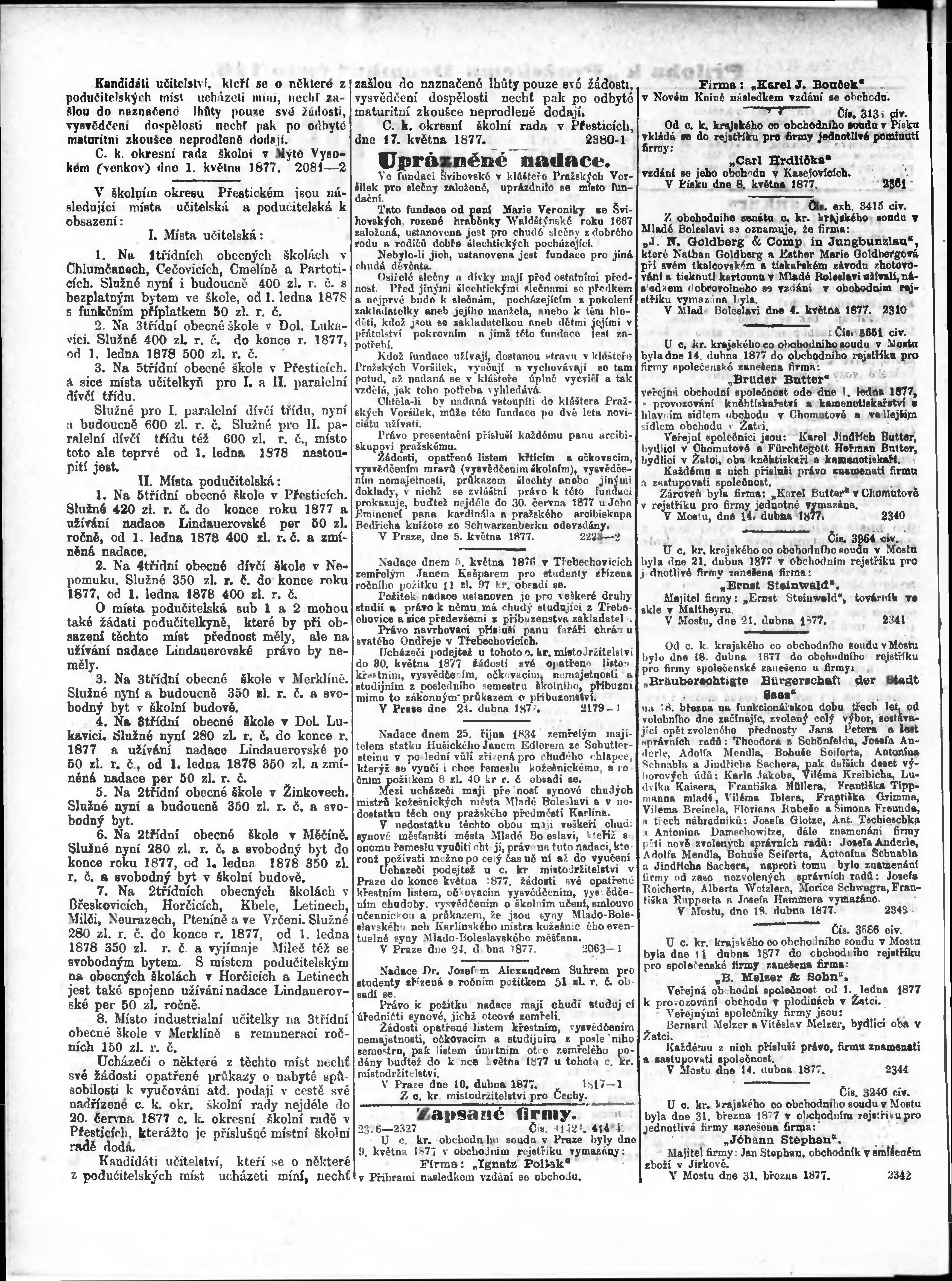 * Datum vydání výtisku: 23.5.1877 Číslo výtisku: 116 Typ výtisku: příloha
