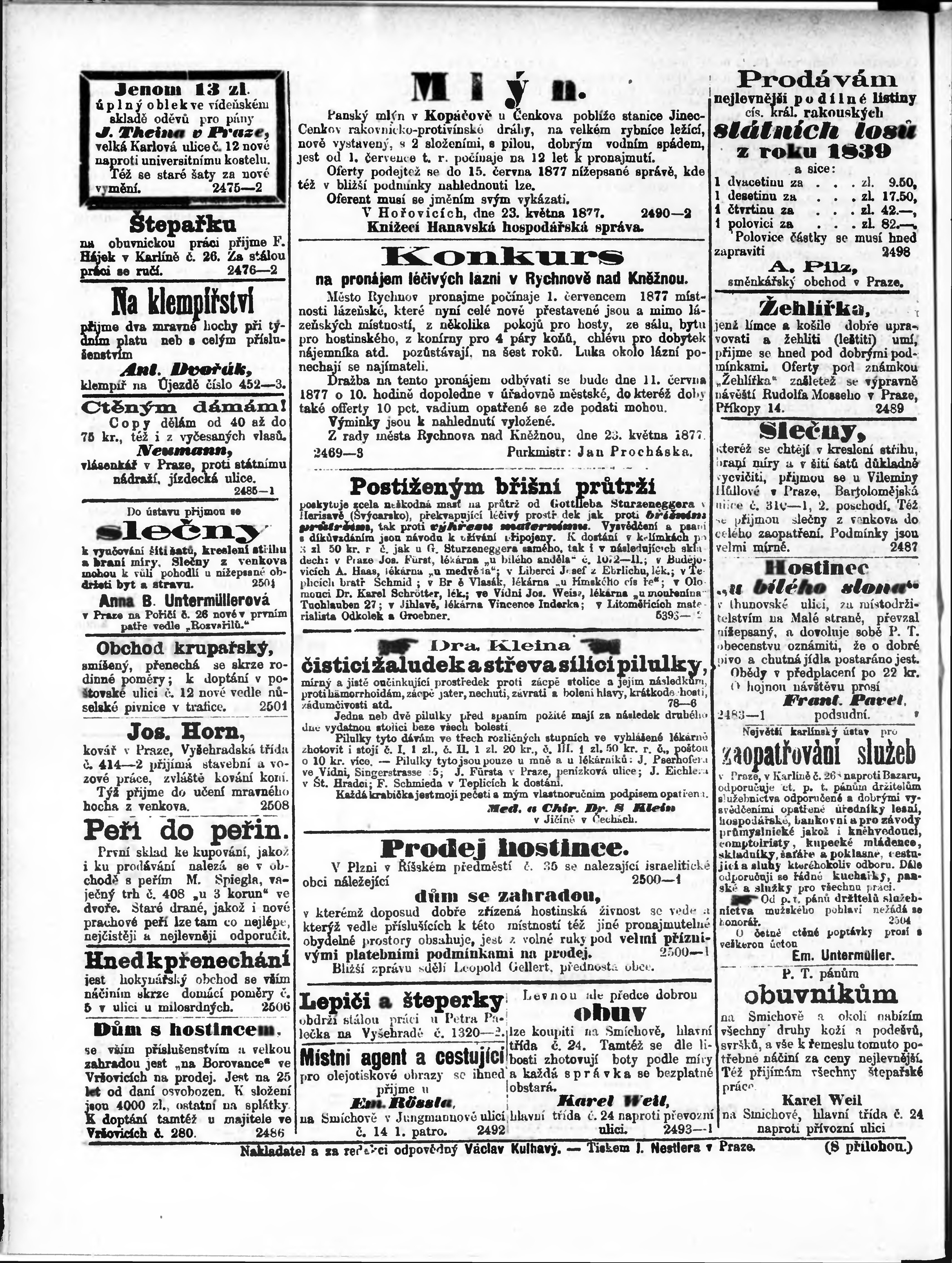 * Datum vydání výtisku: 27.5.1877 Číslo výtisku: 120