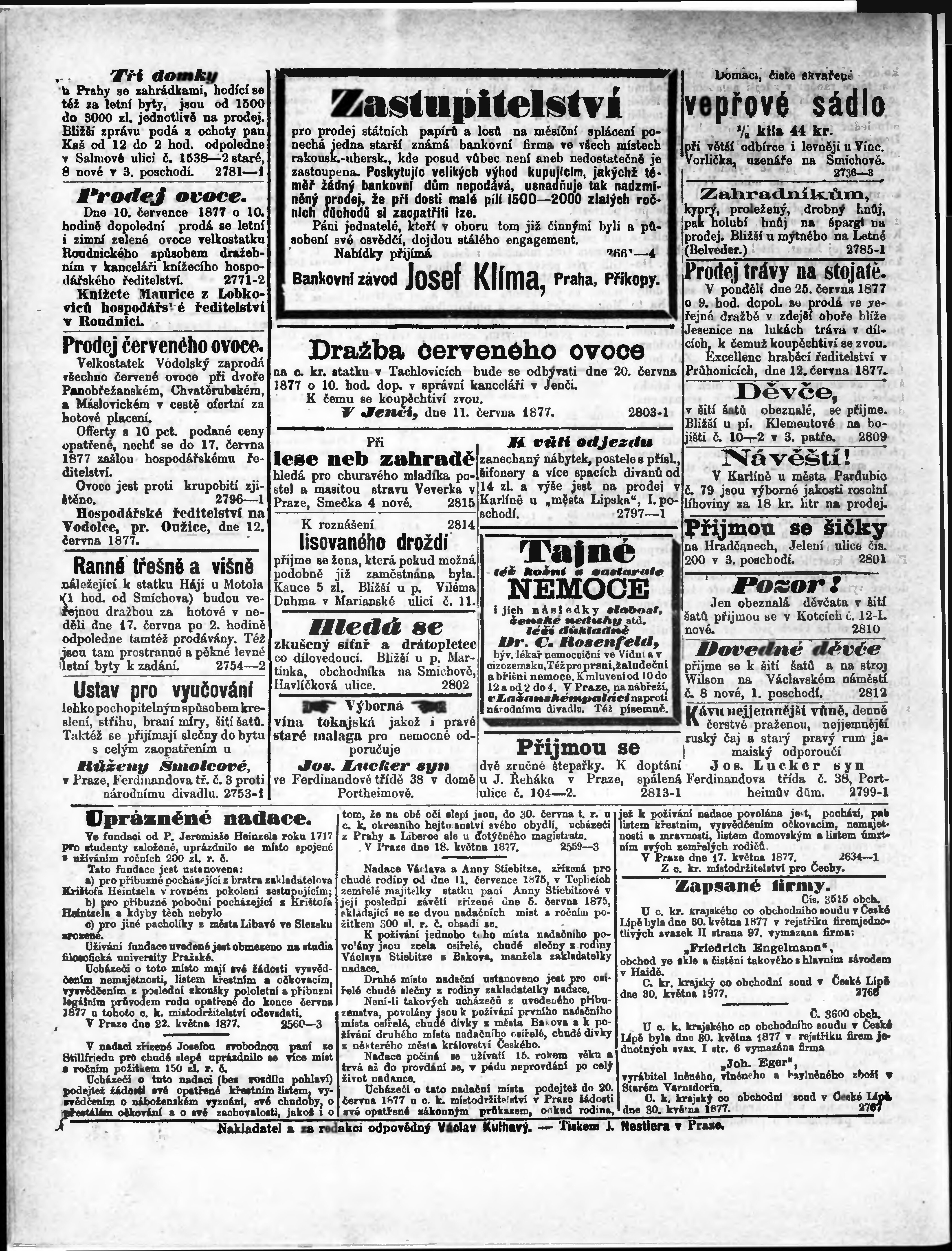* Datum vydání výtisku: 14.6.1877 Číslo výtisku: 134