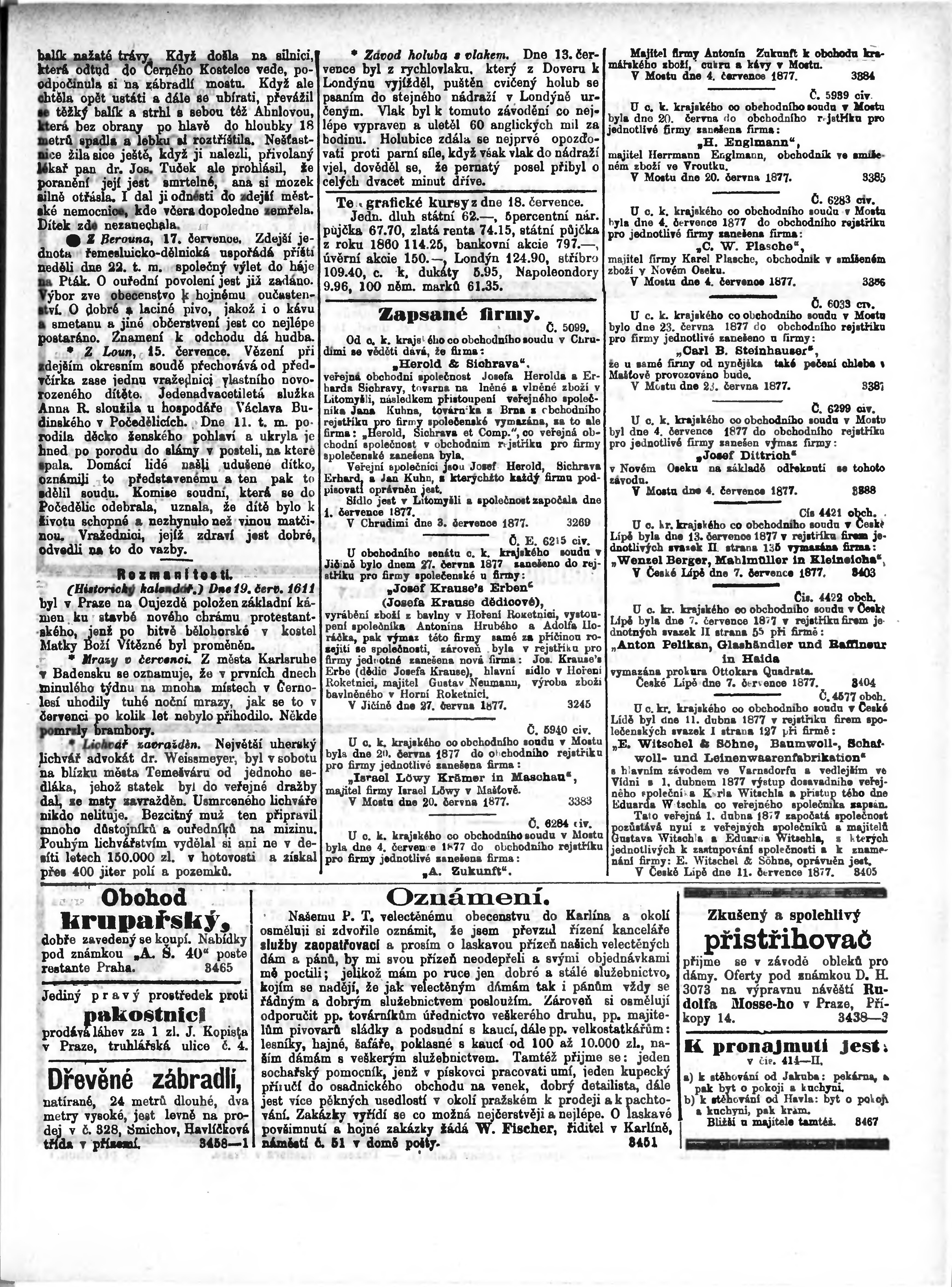 * Datum vydání výtisku: 19.7.1877 Číslo výtisku: 163