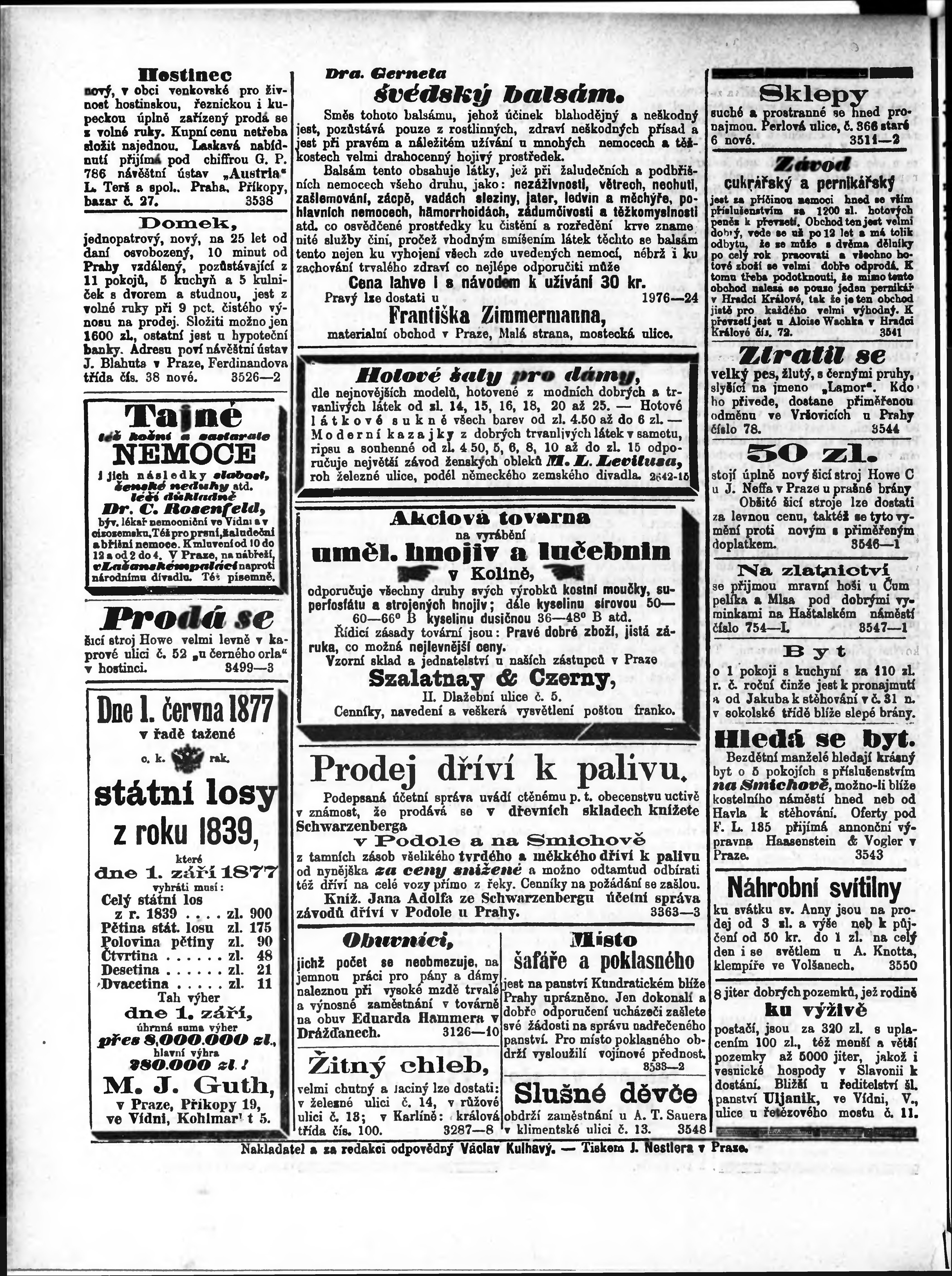 * Datum vydání výtisku: 25.7.1877 Číslo výtisku: 168