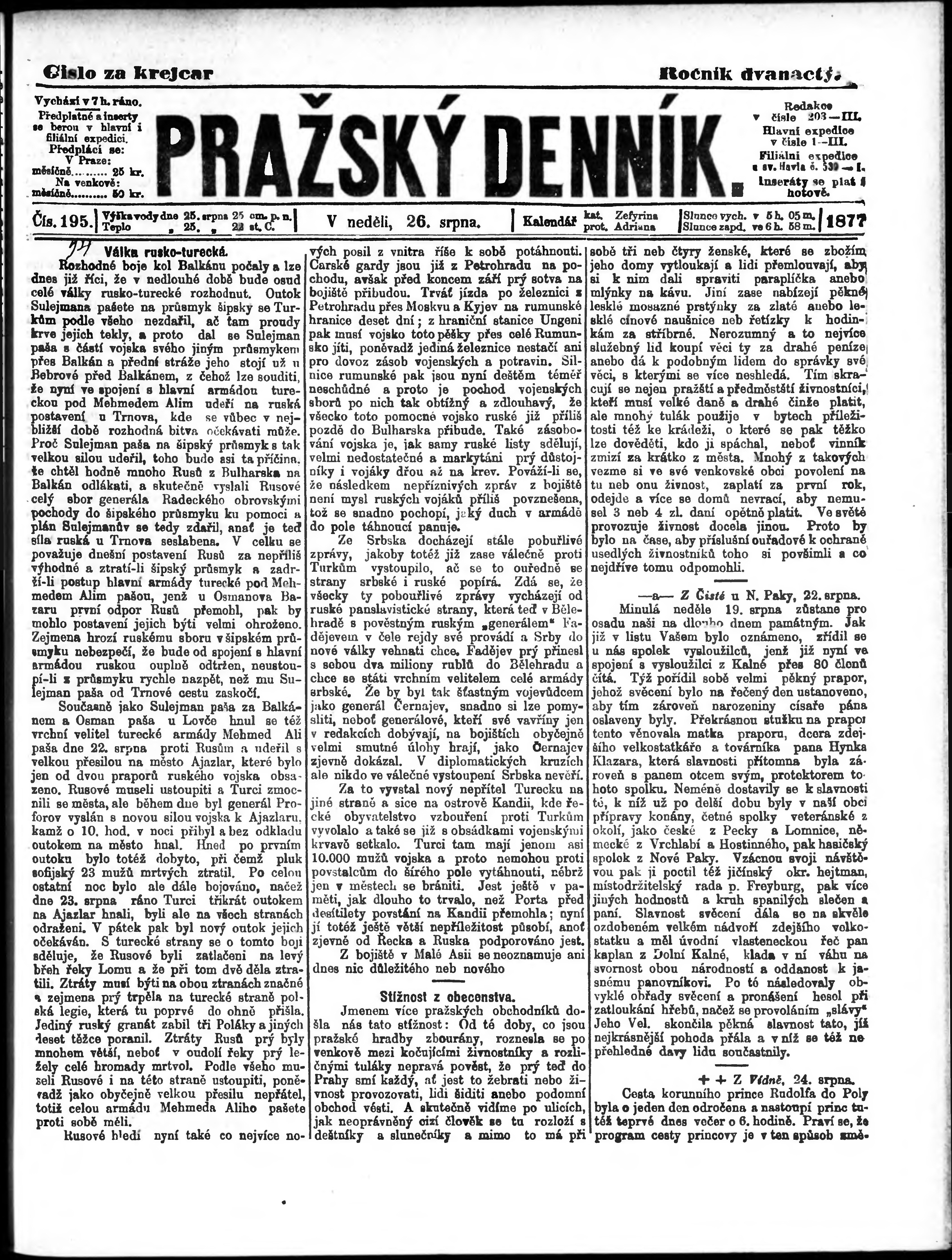 * Datum vydání výtisku: 26.8.1877 Číslo výtisku: 195