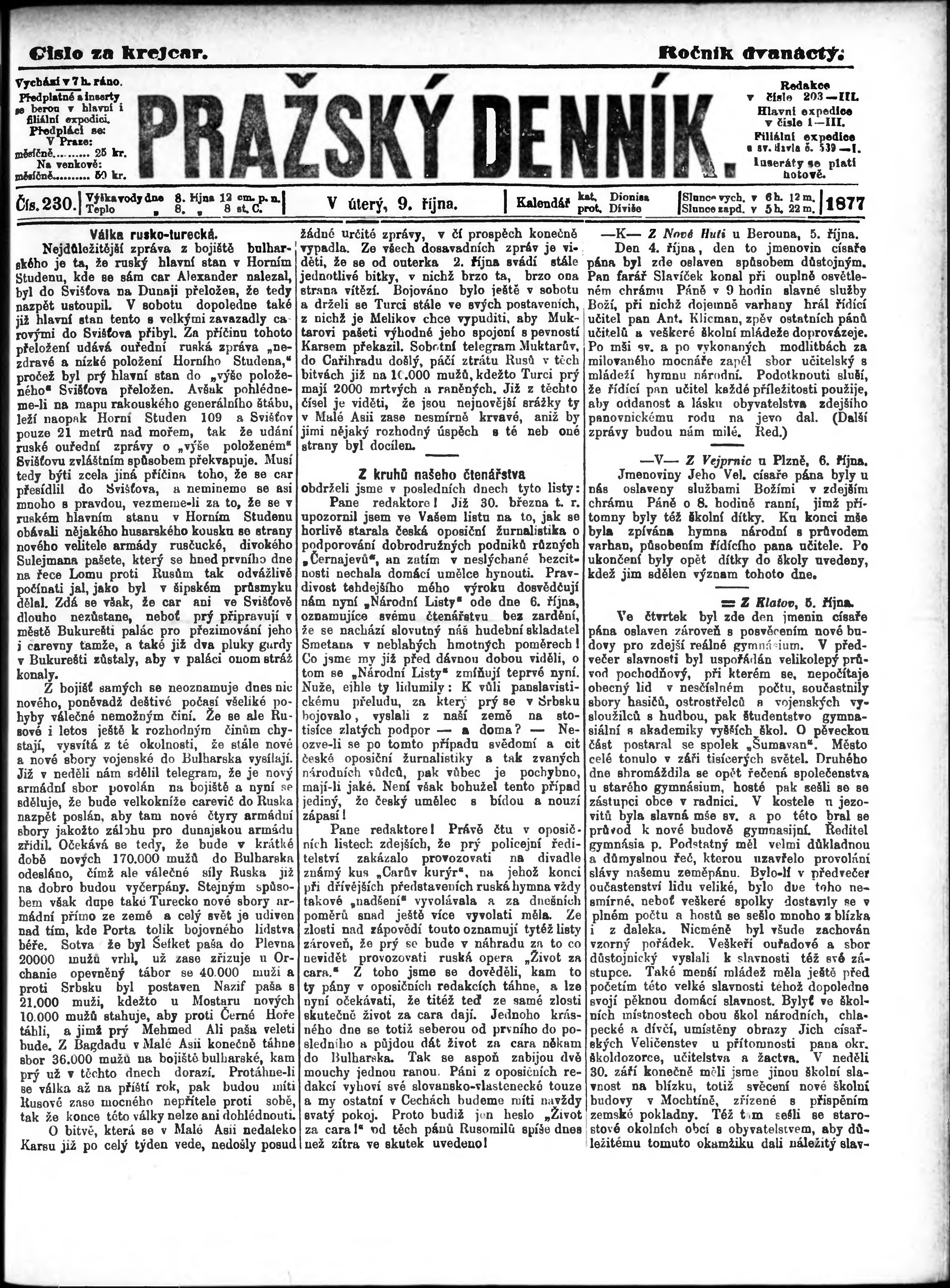 * Datum vydání výtisku: 9.10.1877 Číslo výtisku: 230