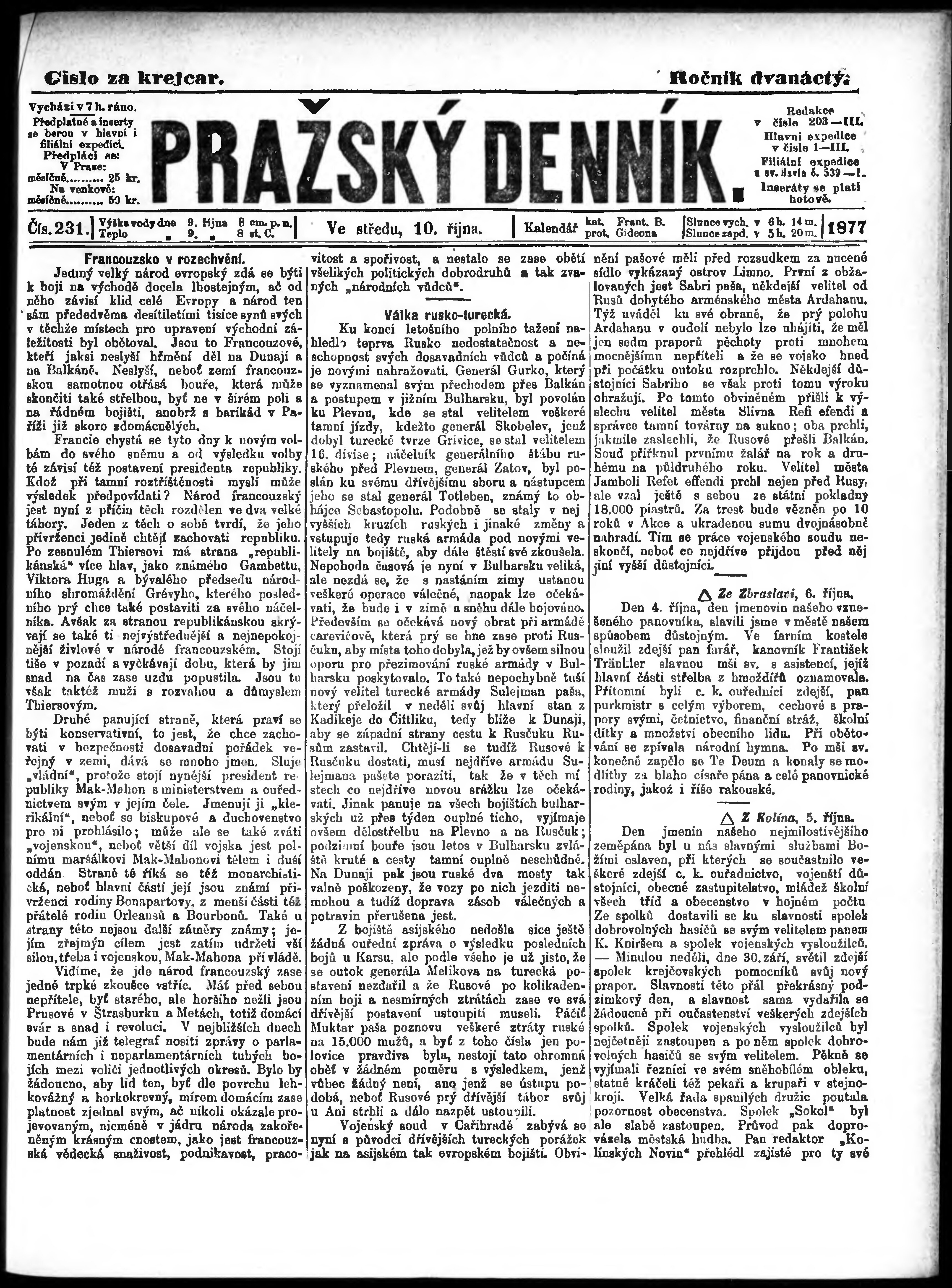 * Datum vydání výtisku: 10.10.1877 Číslo výtisku: 231