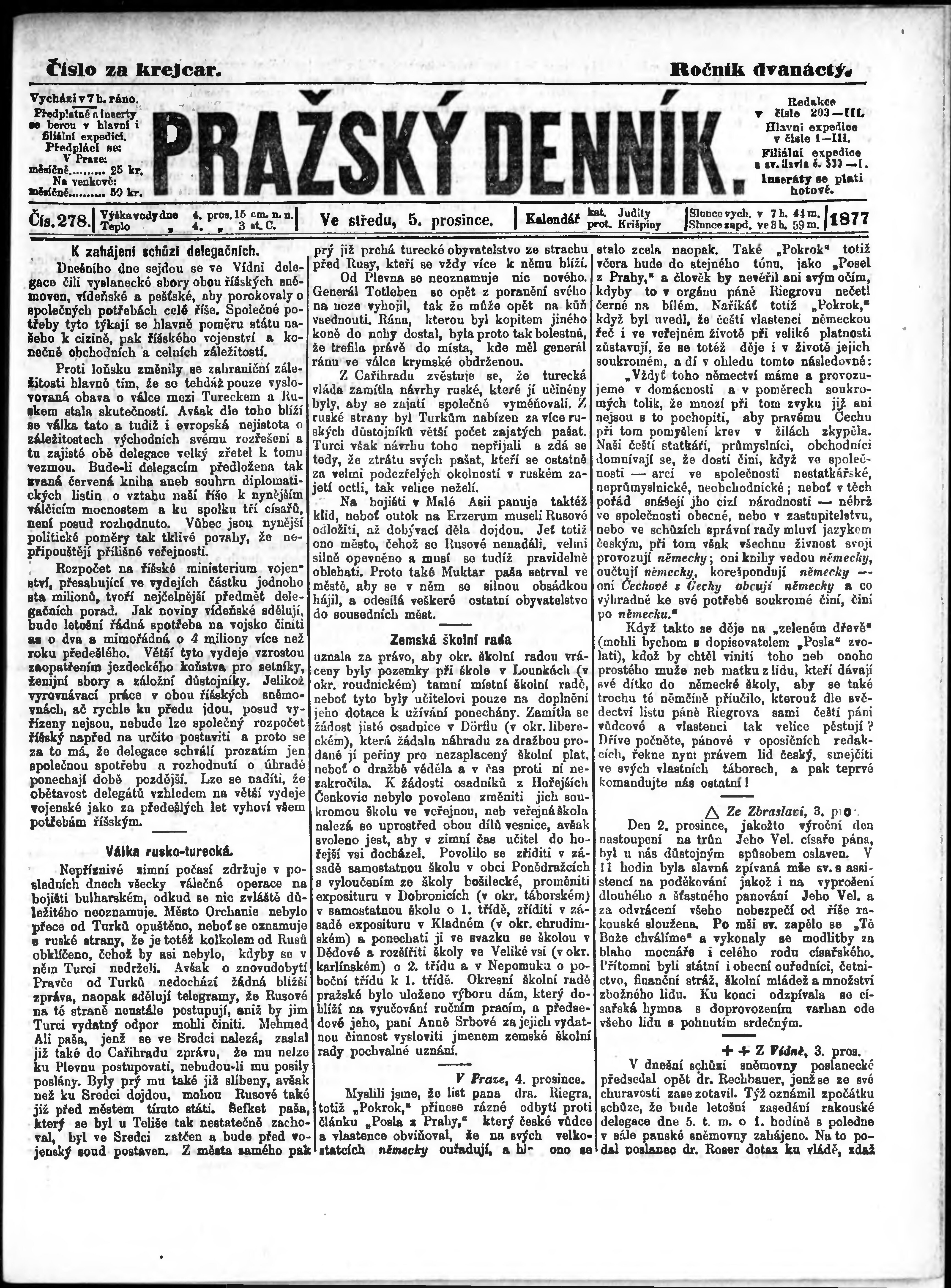 * Datum vydání výtisku: 5.12.1877 Číslo výtisku: 278
