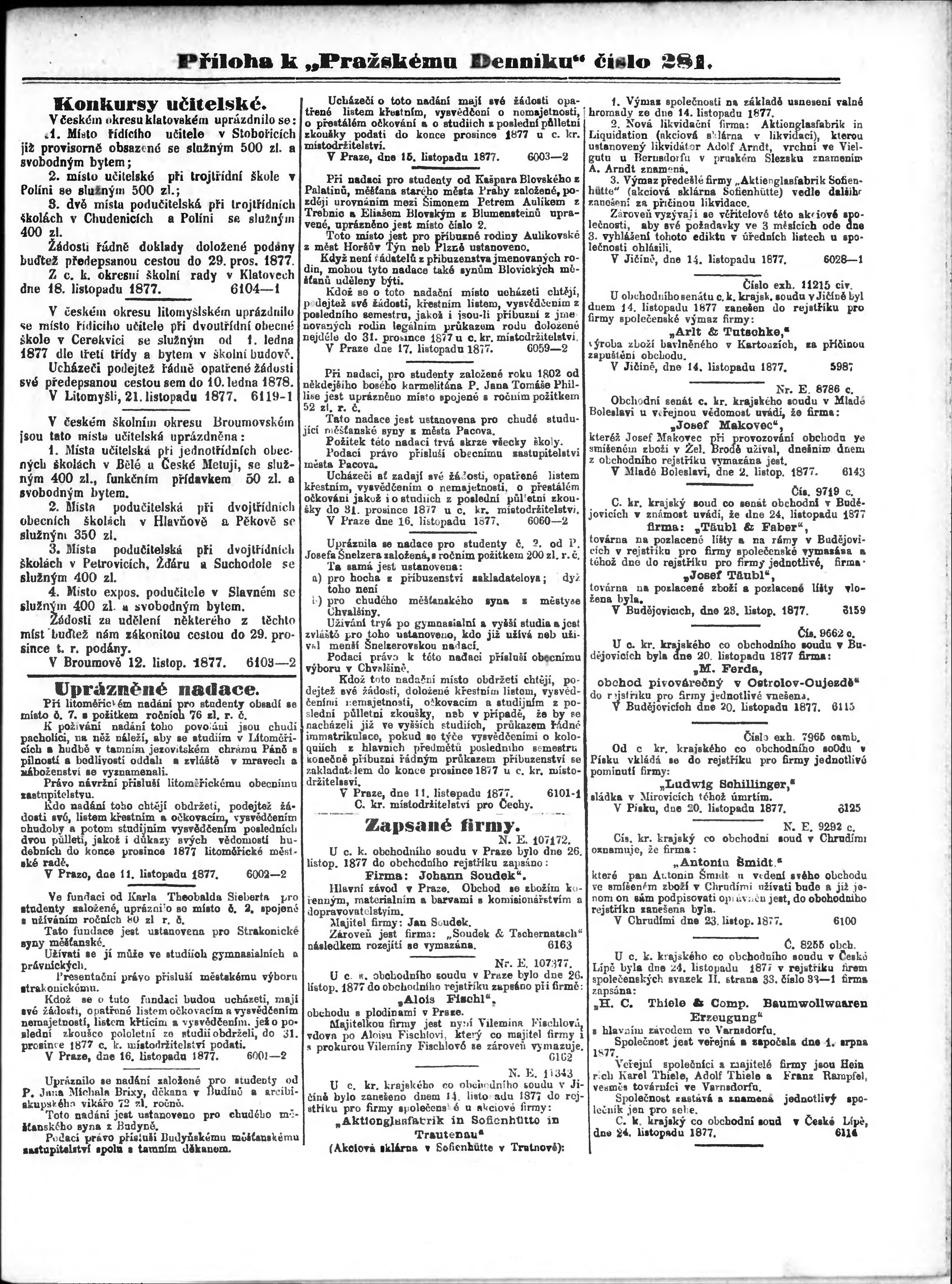 * Datum vydání výtisku: 8.12.1877 Číslo výtisku: 281 Typ výtisku: příloha