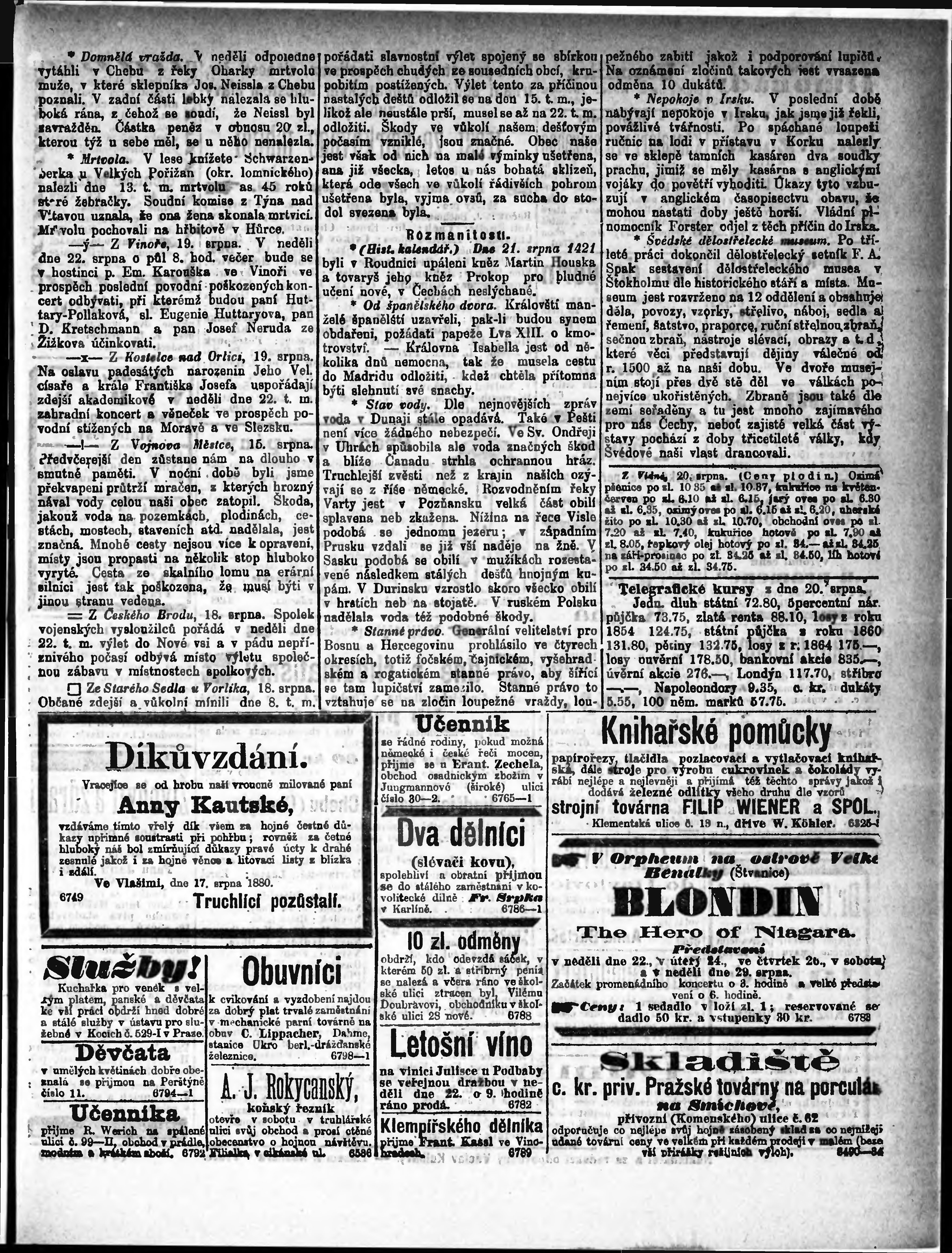 * Datum vydání výtisku: 21.8.1880 Číslo výtisku: 193