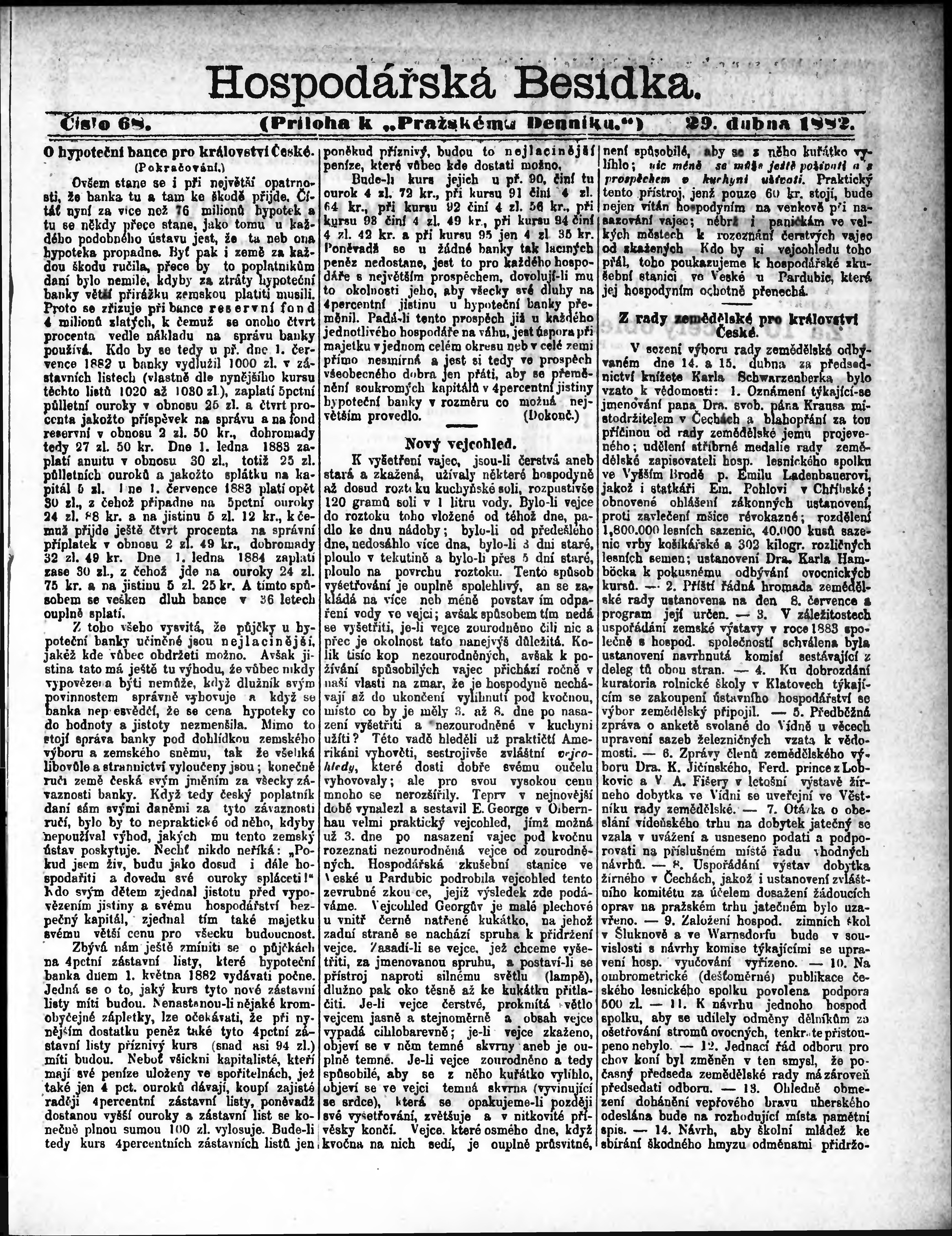 * Datum vydání výtisku: 29.4.1882 Číslo výtisku: 68 Typ výtisku: příloha
