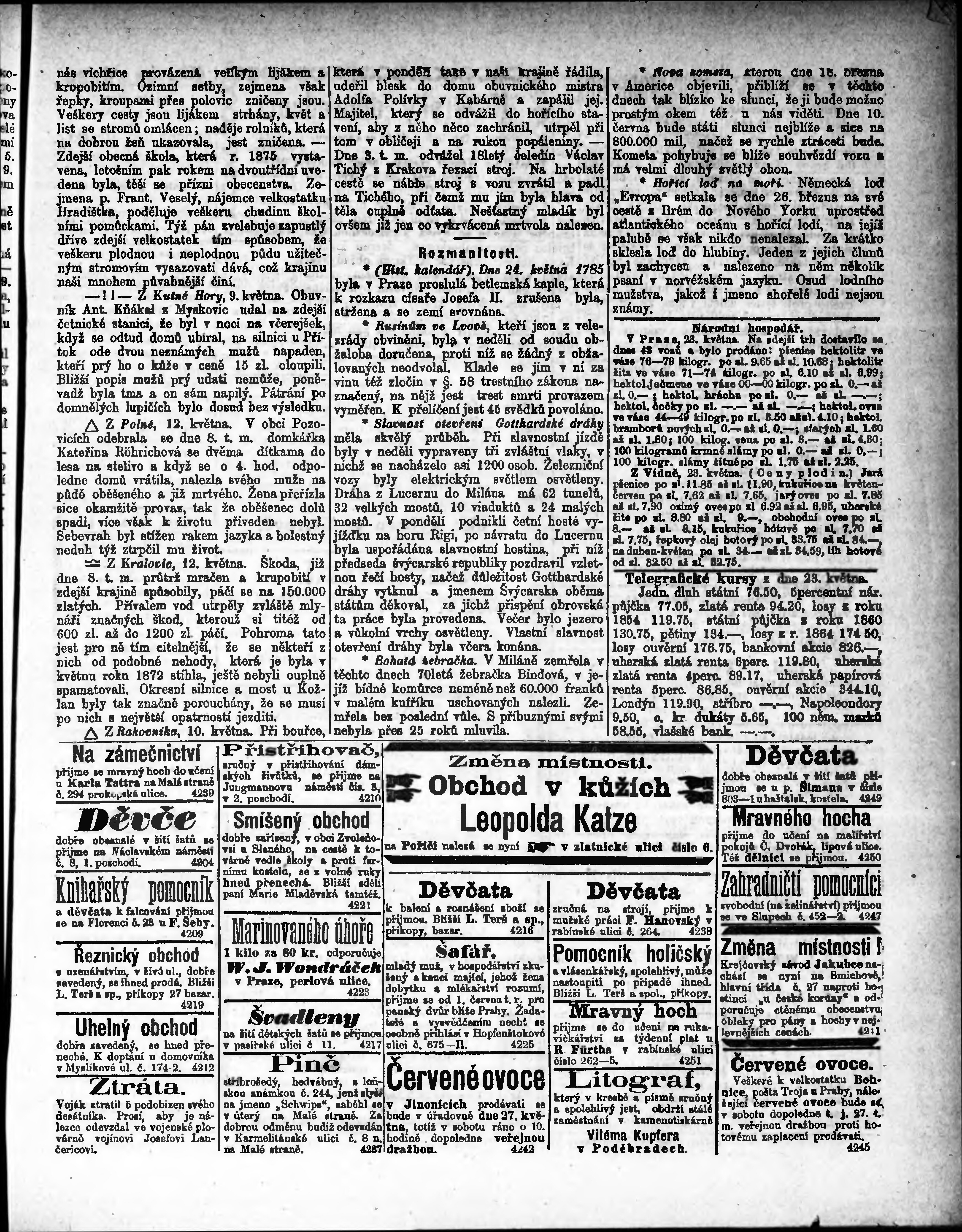 * Datum vydání výtisku: 24.5.1882 Číslo výtisku: 117