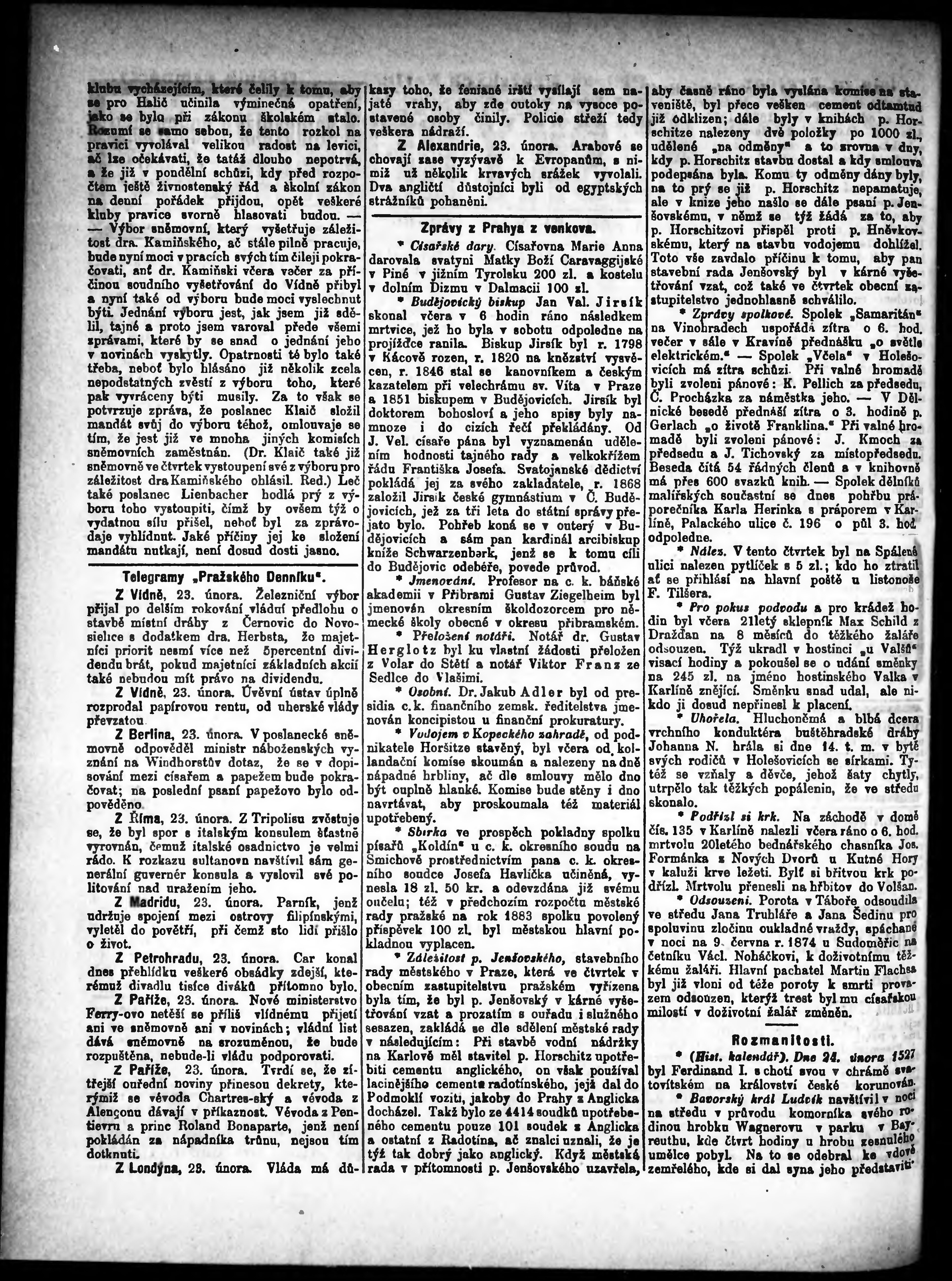 * Datum vydání výtisku: 24.2.1883 Číslo výtisku: 45