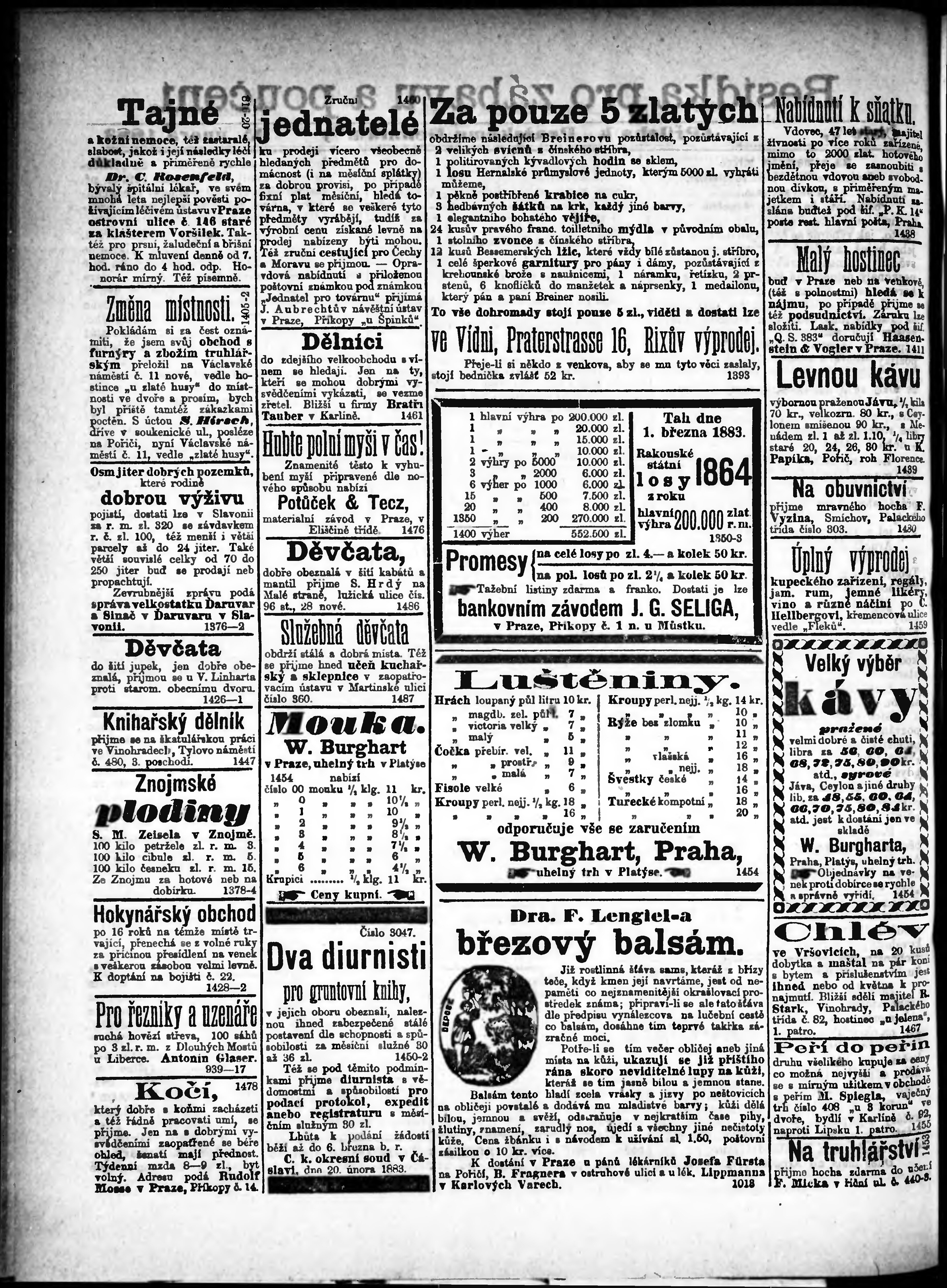 * Datum vydání výtisku: 25.2.1883 Číslo výtisku: 46