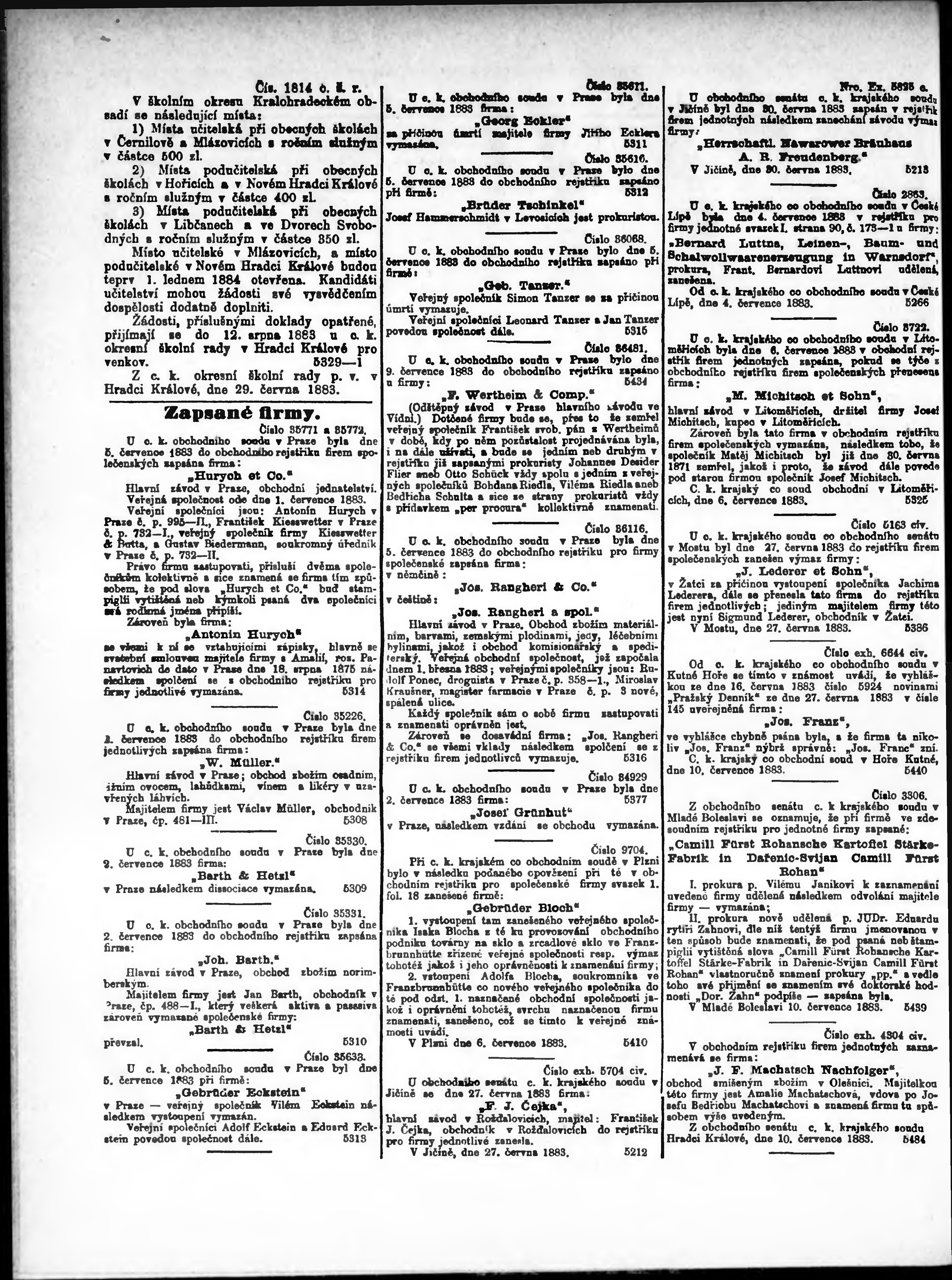 * Datum vydání výtisku: 19.7.1883 Číslo výtisku: 163 Typ výtisku: příloha