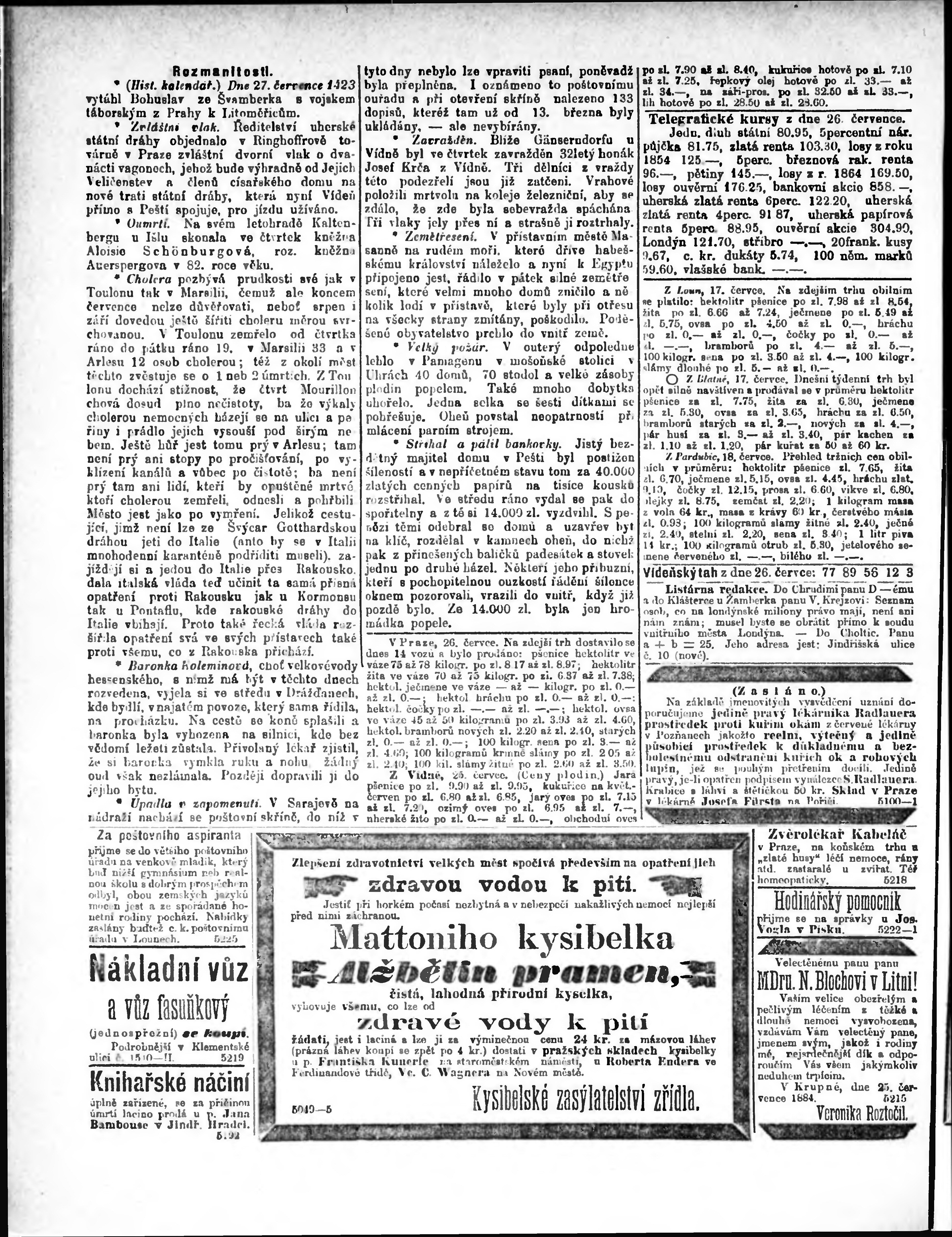 * Datum vydání výtisku: 27.7.1884 Číslo výtisku: 78 Typ výtisku: příloha