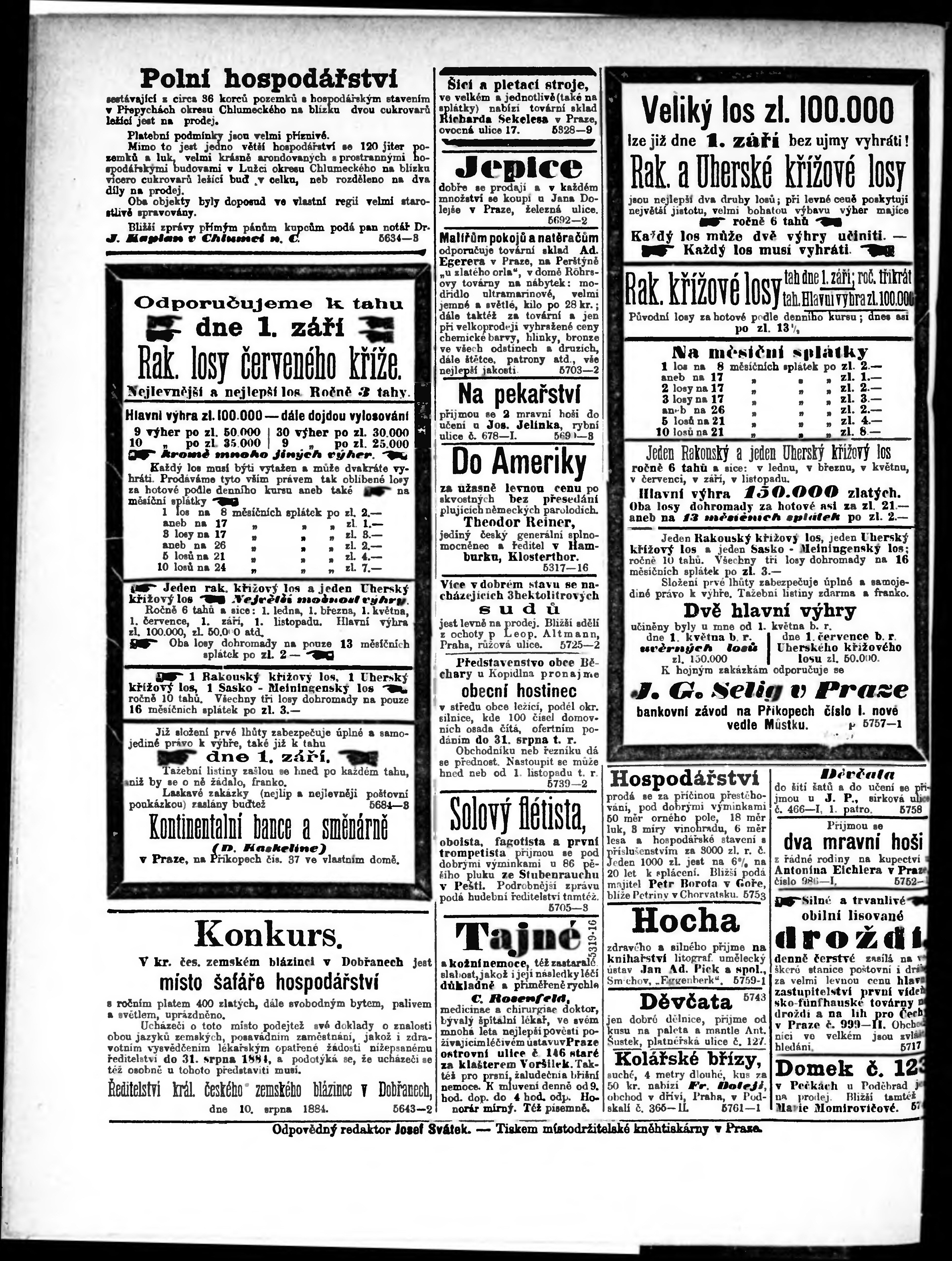 * Datum vydání výtisku: 21.8.1884 Číslo výtisku: 192